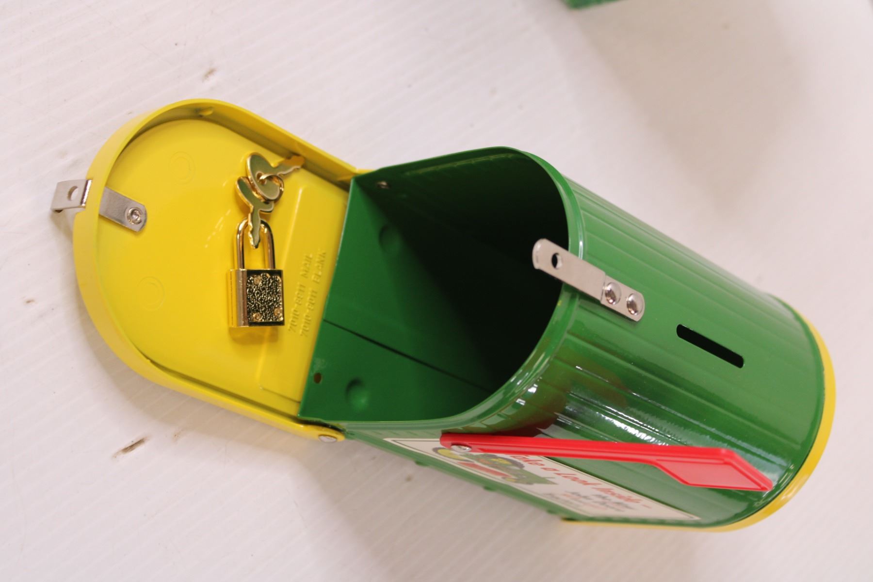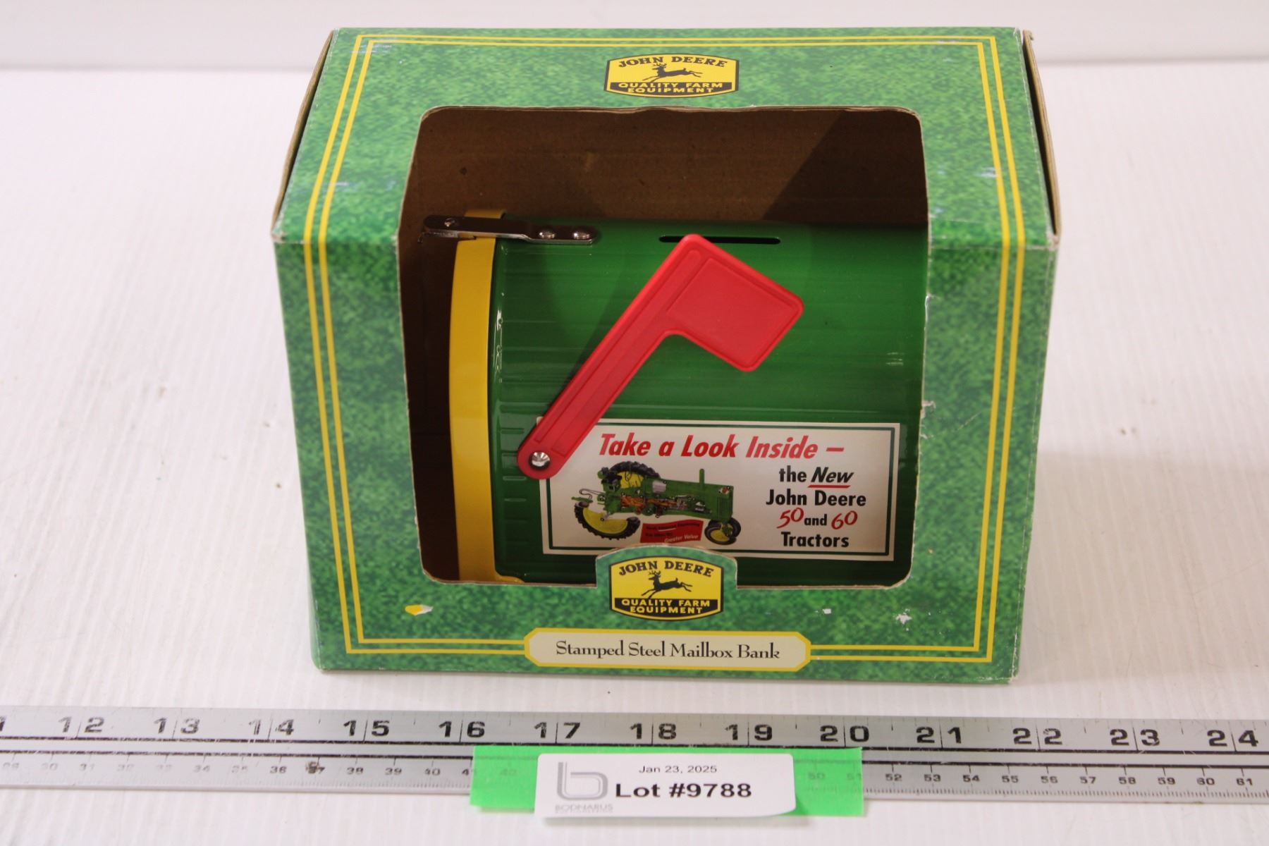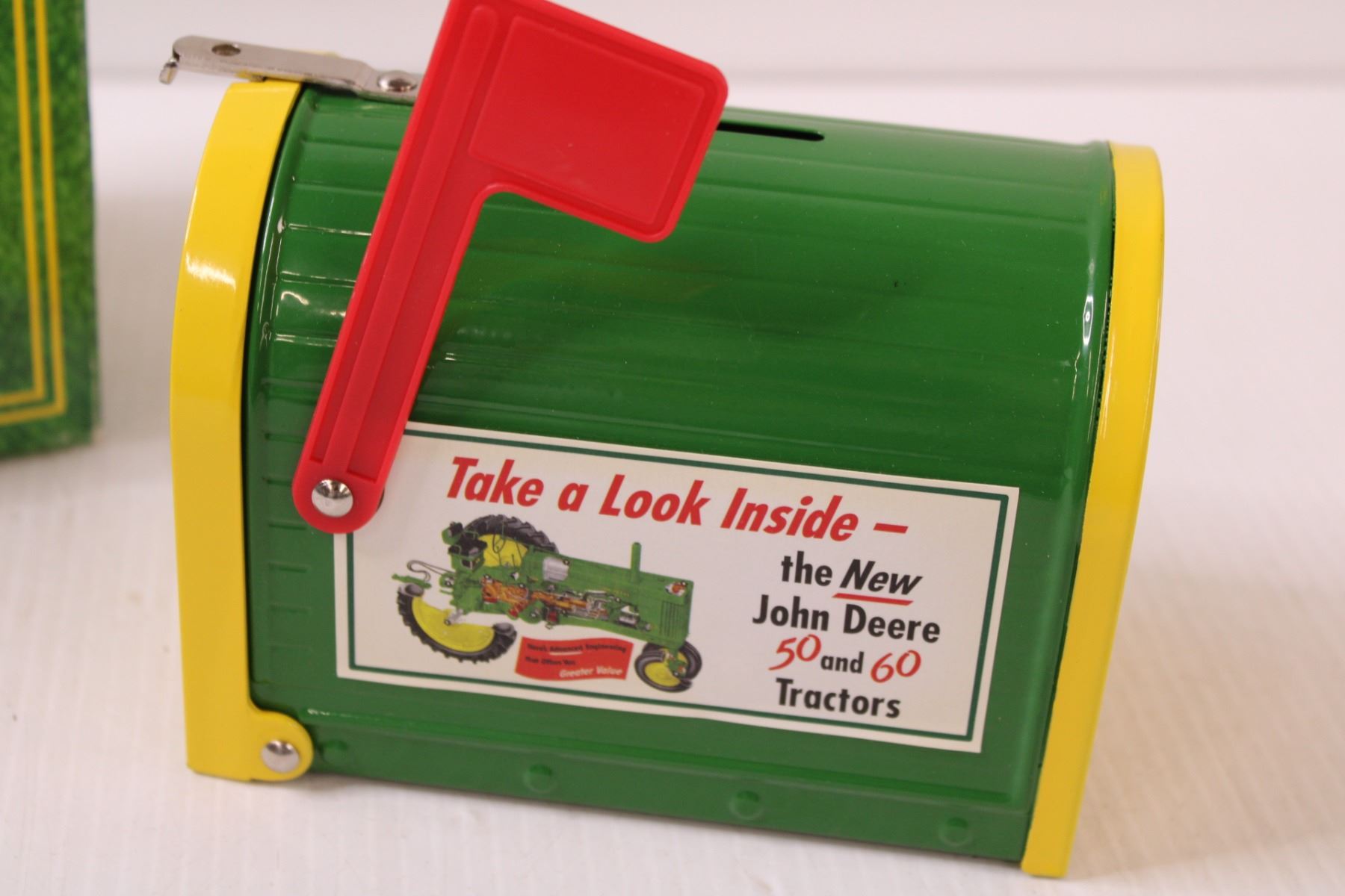 John Deere ERTL Stamped Steel Mailbox Money Bank w/ Keys & Lock in Box