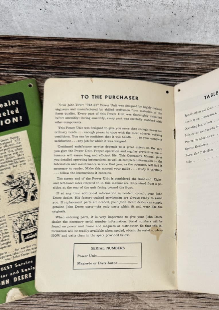Fertilizer attachment and HA-92 power unit operator's manuals.