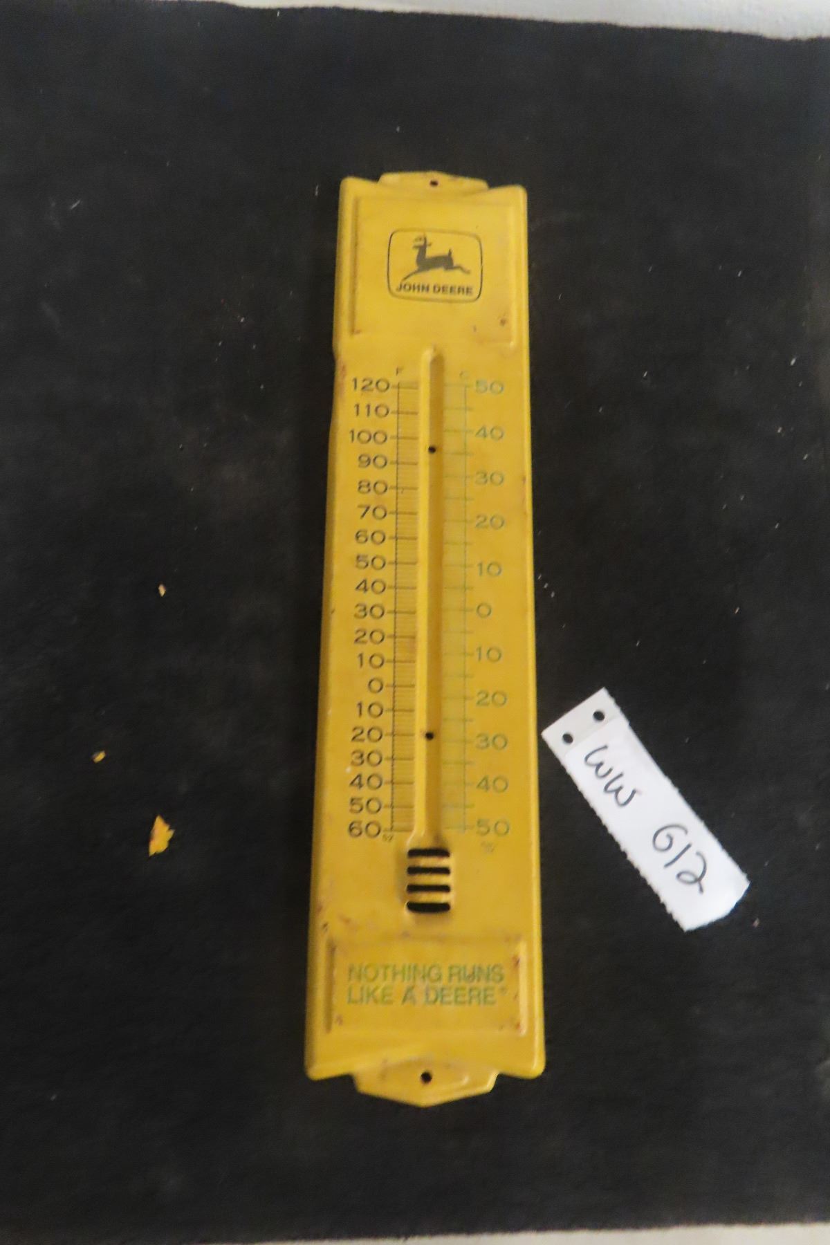 John Deere Metal Thermometer No Bulb 3” x 12”