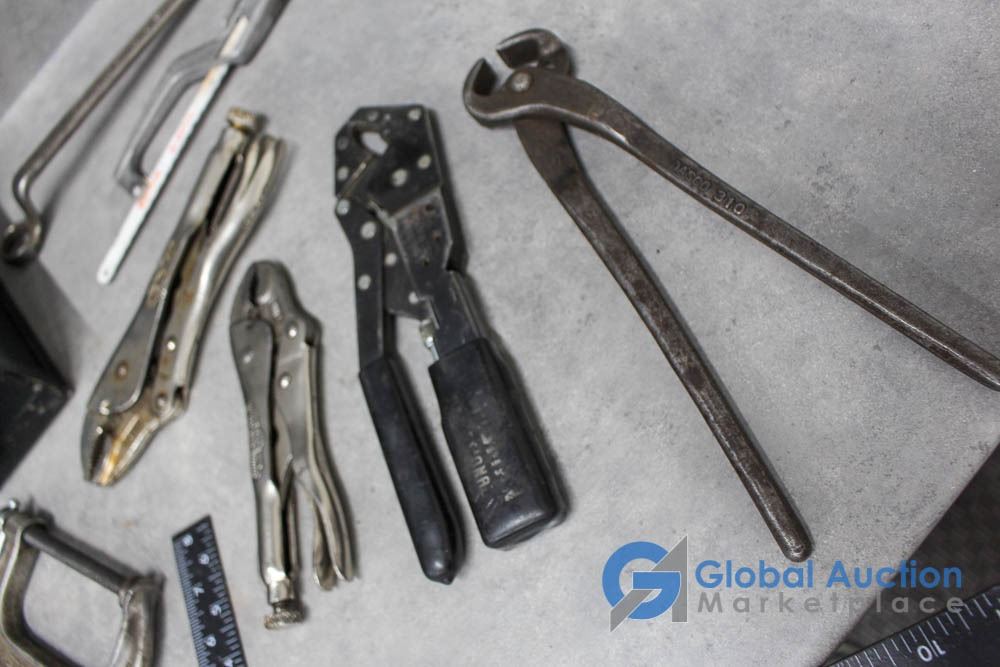 Selection of C-Clamps; Vise Grips; Pliers; Ratchets; etc.