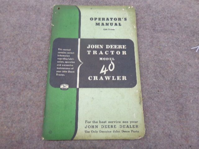 This manual is for a John Deere Tractor Model 40 Crawler. OM-T3-952