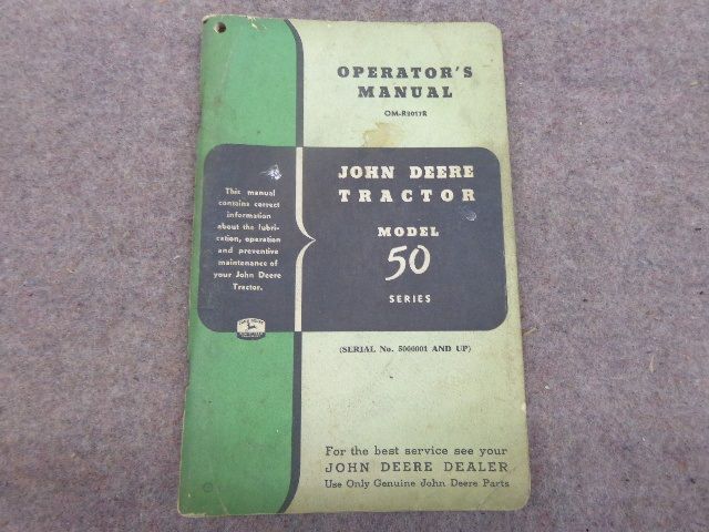 This is an operators manual for a JD Tractor Model 50 Series. Serial No 5000001 and up. OM-R2017R