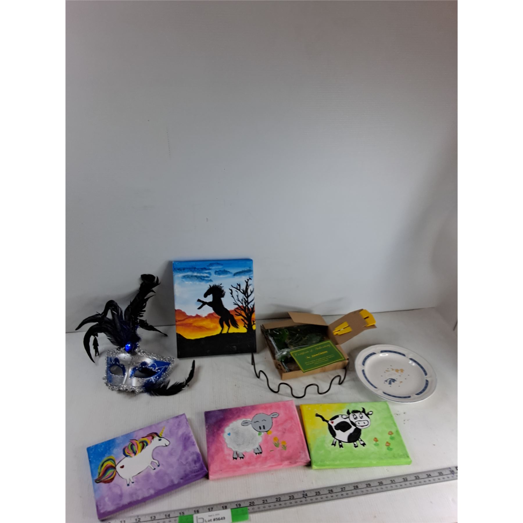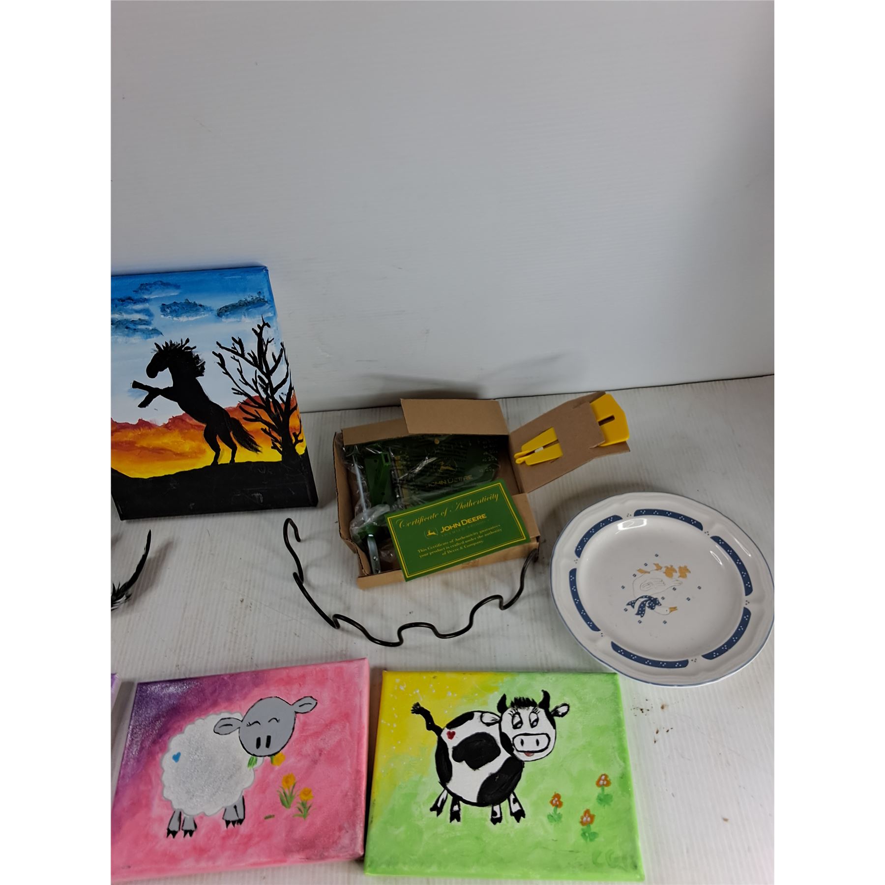 John Deere Weather Gauge, Mask , (4) Paintings, Misc - As Is