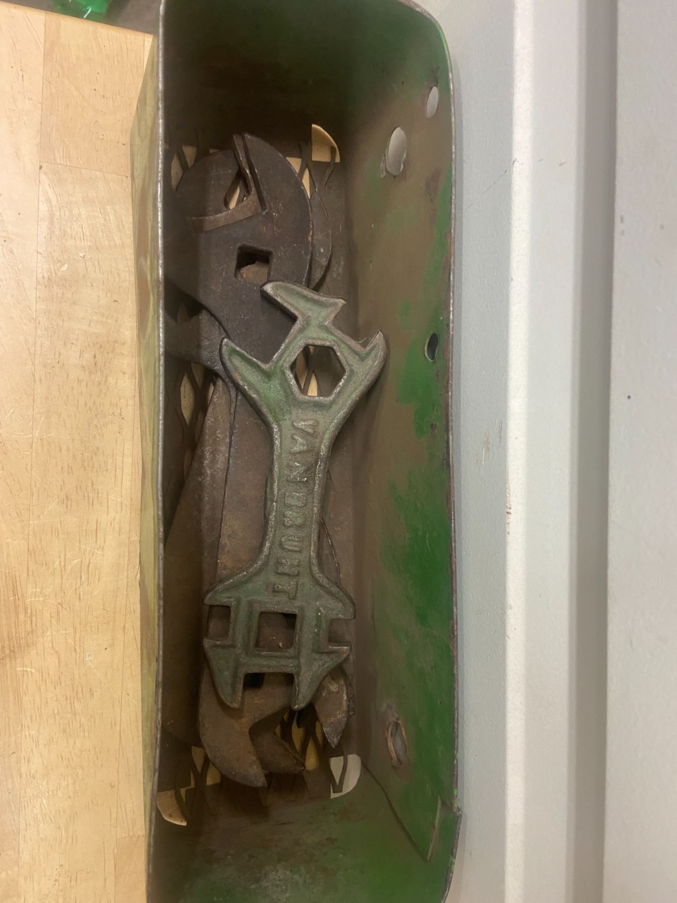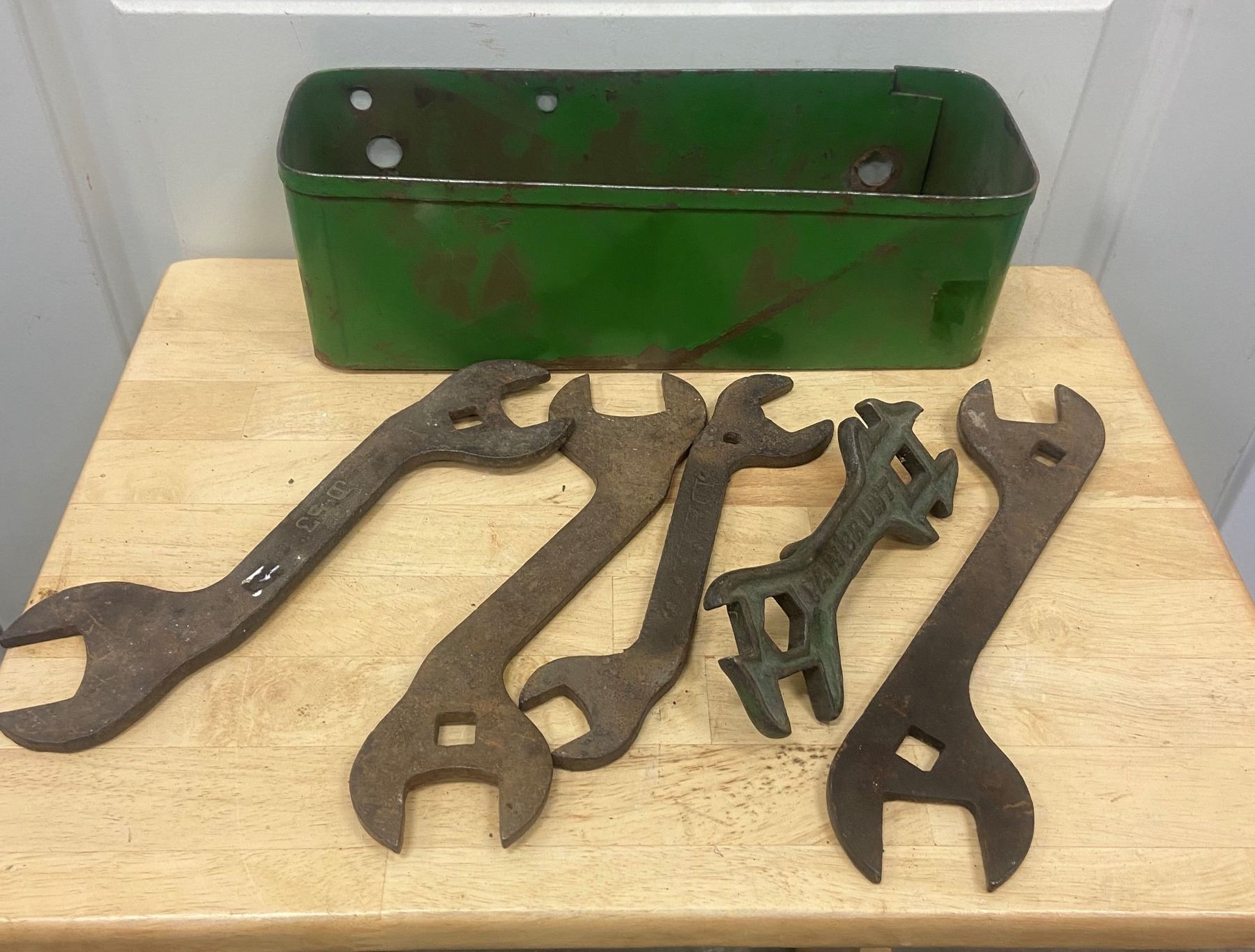 John Deere tool box with 5 J.D tools