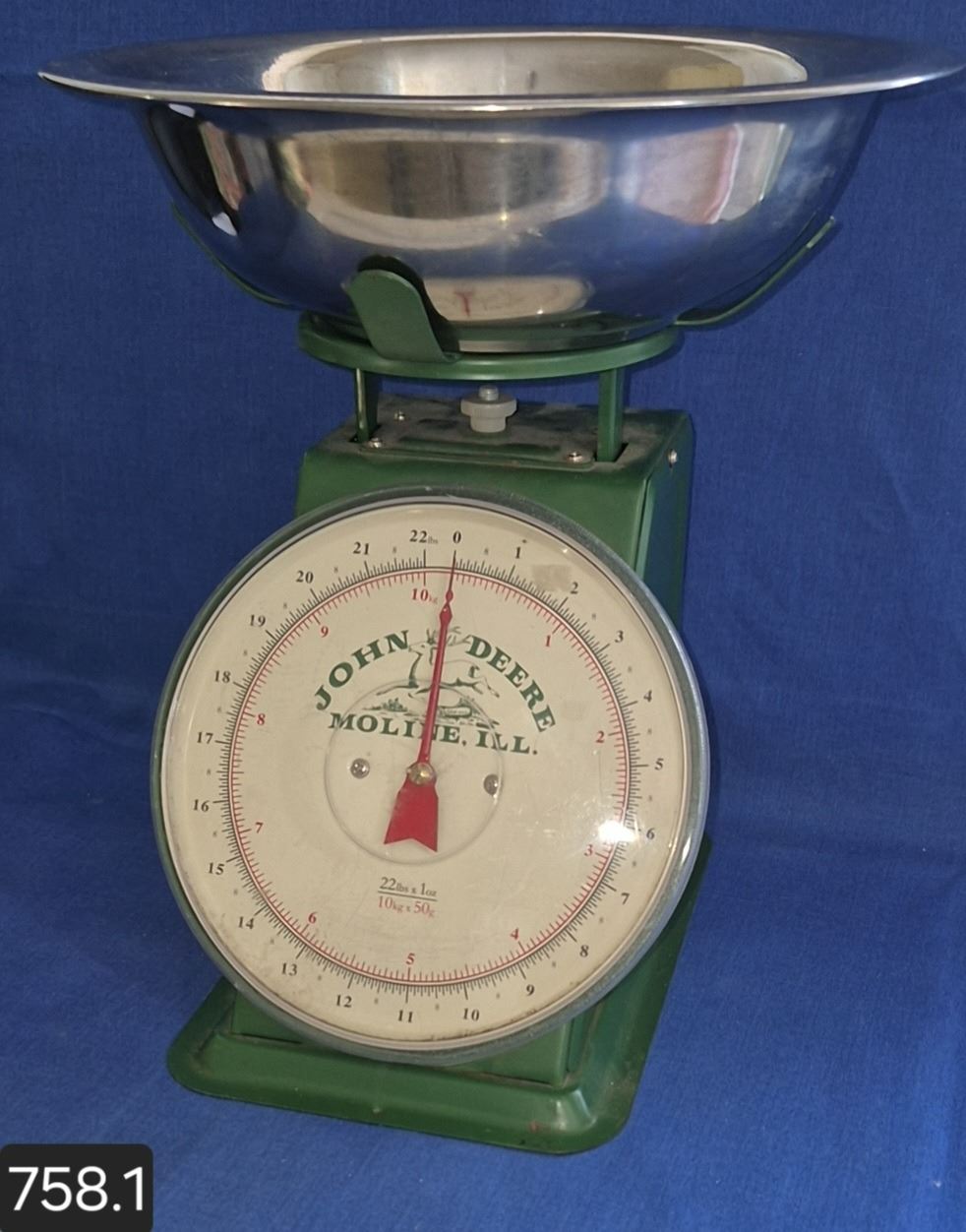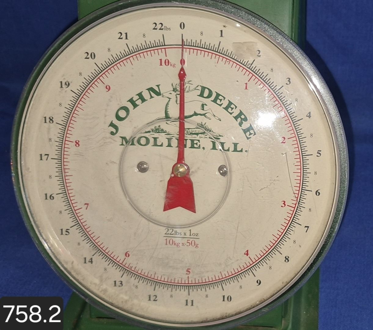 John Deere weighing scale, large. Works great. Approximately 13 inches tall