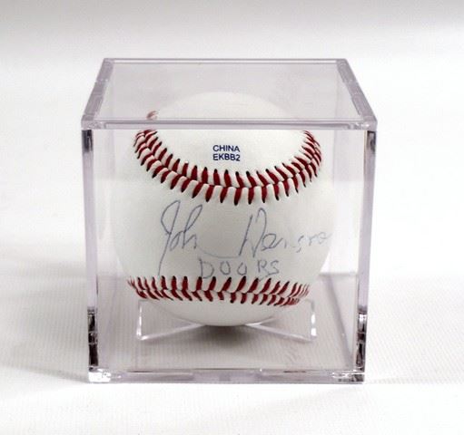 From John Densmore, best known as the original drummer for "The Doors", this is a signed official Rawling Major League Baseball. John signed it in homage to the days on Venice Beach when he and his fellow Door's members, Ray Manzarek, Robby Krieger and lead singer Jim Morrison would play their own version of catch on the beach. It is encased in a Ultra-Pro UV protected ball holder. Holder is 3"x3".