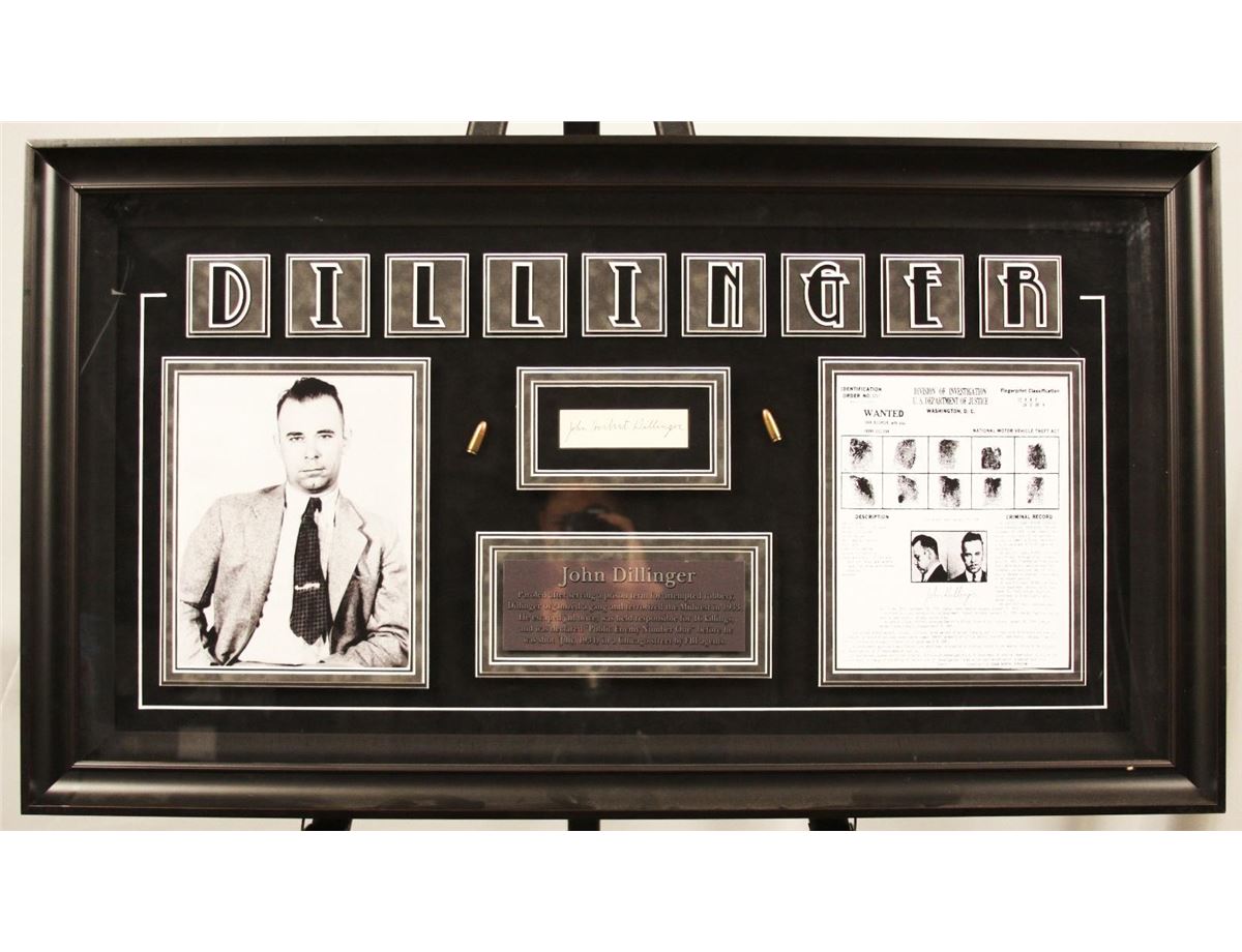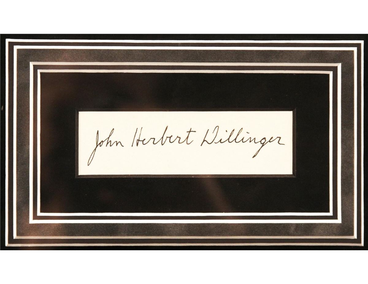 This framed collage features an actual signature by Chicago's "Public Enemy Number One", John Herbert Dillinger. Includes a certificate of authenticity.