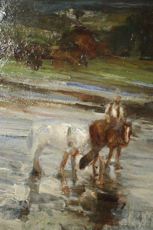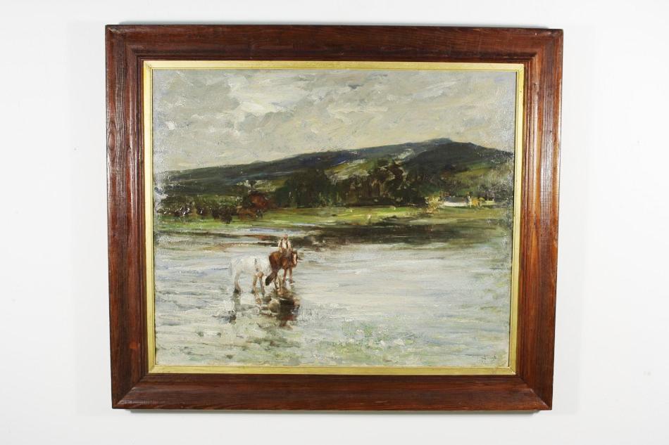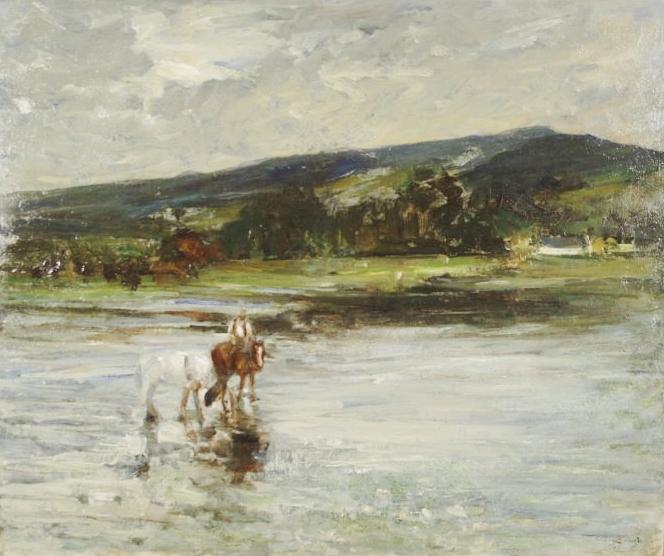 John Dirk Bowie (1860-1914) Figures in a Landscape with River, Oil on canvas,