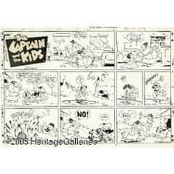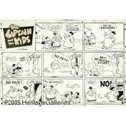 <B>John Dirks - The Captain and the Kids Sunday Comic Strips Group of 35 Original Art (United Features Syndicate, 1963).</B></I> Rudolph Dirks was one of the major figures in the development of newspaper comics. He invented the <I>Katzenjammer Kids</B></I> in 1897, and drew various versions of them for roughly the next half century. He remained fond of Hans and Fritz throughout his long lifetime, and continued drawing the strip until 1958, when he turned the strip over to his son, John. We are proud to present to you an entire year of Sunday <I>The Captain and the Kids</B></I> strips from 1963 by John Dirks. There are several days missing from the collection, but the majority of strips are here. Each strip measures 15.25" x 22" and are all the strips average in Very Good condition. <I>From the collection of Rudolph and John Dirks.</B></I> 35 Original Art