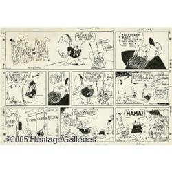 <B>John Dirks - The Captain and the Kids Sunday Comic Strips Group of 25 Original Art (United Features Syndicate, 1968).</B></I> 1968 was a landmark year in the life of the <I>The Captain and the Kids</B></I> comic strip. Rudolph Dirks, the original creator of the strip, passed away in New York City on April 20 of that year, and his son, John Dirks, who had been helping with the strip since 1946, began signing his own name as the artist. Represented here is the majority of the Sunday <I>The Captain and the Kids</B></I> strips from 1968, although there are days and weeks of strips missing. There are also two additional strips dated 12-5-65 and 5-6-73. One of the founding fathers of American comics, Rudolph Dirks has left his mark on all facets of the medium, and his son carried on the family tradition until 1979, when the strip finally folded. Each strip measures 15.25" x 22" and are all the strips average in Very Good condition. <I>From the collection of Rudolph and John Dirks.</B></I> 25 Original Art