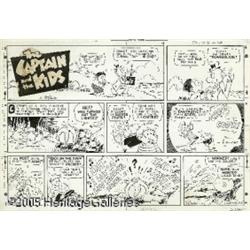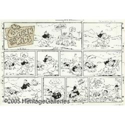 <B>John Dirks - The Captain and the Kids Sunday Comic Strips Group of 35 Original Art (United Features Syndicate, 1969).</B></I> Hans, Fritz, der Captain, Mama und many more grace these thirty five <I>The Captain and the Kids</B></I> Sunday comic strips by John Dirks. Dirks continued to solo the strip after his father's death in 1968, and brought his own creative sensibilities to this fifty year old strip. John Dirks preserved the unique flavor and charm of this classic American comic strip, continuing the legacy begun by his father, Rudolph Dirks, the originator of the series. Here are the majority of the Sunday <I>The Captain and the Kids</B></I> strips from 1969, although there are days and weeks of strips missing. Each strip measures 15.25" x 22" and are all the strips average in Excellent condition. <I>From the collection of Rudolph and John Dirks.</B></I> 35 Original Art