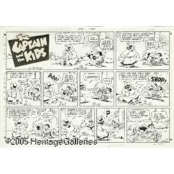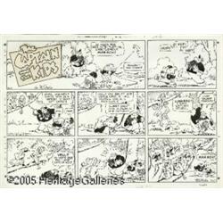 <B>John Dirks - The Captain and the Kids Sunday Comic Strips Group of 30 Original Art (United Features Syndicate, 1971).</B></I> That <I>The Captain and the Kids</B></I> comic strip ran for over 50 years is ample testament to the longevity of the Captain, Hans, Fritz, Mamma, and Der Inspector as envisioned by their creator, Rudolph Dirks. In the modern age of instant gratification, when popular icons are at the mercy of a whimsical public, it is safe to predict that no cast of characters will ever match the enduring popularity of the Captain and his company in the hearts of the American public. Dirks rendered his characters in a loose style that has a charm that is simply irresistible. Rudolph Dirk's son John took over the strip in 1958 and continued writing and drawing it until 1979. Here is a group of 30 Sunday strips, representing most of the entire year of 1971 by John Dirks. Each strip measures 15.25" x 22" and all the strips average in Excellent condition. <I>From the collection of Rudolph and John Dirks.</B></I> 30 Original Art
