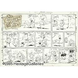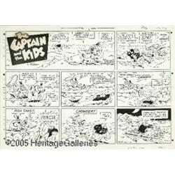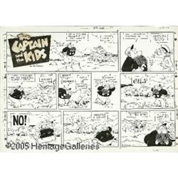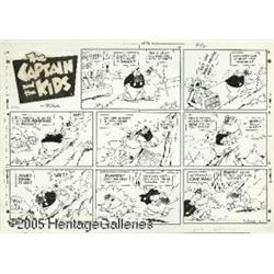 <B>John Dirks - The Captain and the Kids Sunday Comic Strips Group of 39 Original Art (United Features Syndicate, 1974).</B></I> Here's most of the Sunday <I>The Captain and the Kids</B></I> comic strips from the year 1974, by John Dirks, who began to help his father, the original creator, Rudolph Dirks, after he returned from the service in World War II in 1946. After his father's death in 1968, John Dirks began to sign the page until its demise in May 1979. John Dirks put his imprint on the strip, taking it into the field of humorous fantasy and science fiction. Hans and Fritz, the Captain and Mama, all have dere moments in dese vunderful pages. Several Sundays are missing. Each strip measures 15.25" x 22" and are all in Excellent condition. <I>From the collection of Rudolph and John Dirks.</B></I> 39 Original Art