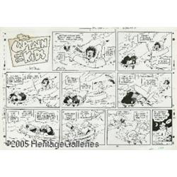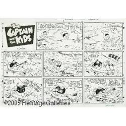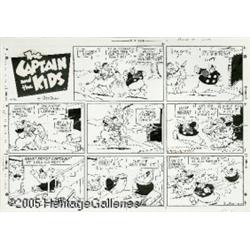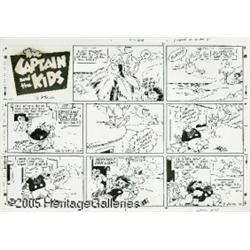 <B>John Dirks - The Captain and the Kids Sunday Comic Strip Original Art, Group of 40 (United Features Syndicate, 1976).</B></I> An amazing collection of 40 Sunday strips, stretching the whole of 1976. The wacky adventures of the Captain (and his Kids) runs from 1-4-76 through 12-26-76, with 12 strips missing from the run. The image area measures 22.5" x 15.25", and all the pages are in Excellent condition, with some browning of the logo stat being the main flaw; some sheets have some slight scuffs and/or stains, but most are pristine. <I>From the collection of Rudolph and John Dirks.</B></I> 40 Original Art