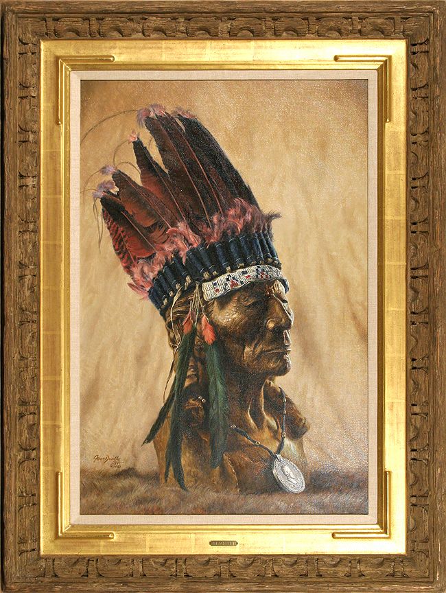 John Duillo (b. 1928). Blackfeet. 30" x 20" oil on canvas. Signed lower left: John Duillo SAHA © 1983. (est. $3,000-5,000). CONDITION REPORTS: www.auctioninsantafe.com/docs/cr2012.pdf