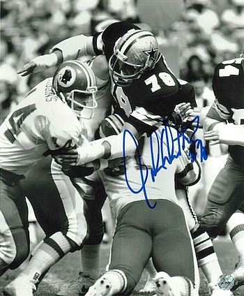 On October 9, 1979, a contract dispute forced the Colts to trade John Dutton to the Dallas Cowboys. Dutton moved to left defensive tackle alongside Randy White, establishing a formidable defensive line that also included Harvey Martin. He was part of the 1985 defensive unit that holds the Cowboys' single-season sack record (62). During his 9 years in Dallas, he helped the Cowboys reach the NFC title game three straight years (1980, 1981 and 1982). He may have been the best Cowboys defensive lineman to have never won a Super Bowl ring. John Dutton has hand signed this Dallas Cowboys B&W 8x10 Photo. Certificate of Authenticity from Athlon Sports Collectibles.