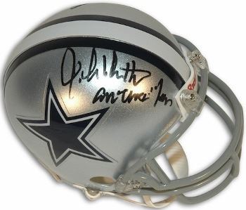 On October 9, 1979, a contract dispute forced the Colts to trade John Dutton to the Dallas Cowboys. Dutton moved to left defensive tackle alongside Randy White, establishing a formidable defensive line that also included Harvey Martin. He was part of the 1985 defensive unit that holds the Cowboys' single-season sack record (62). During his 9 years in Dallas, he helped the Cowboys reach the NFC title game three straight years (1980, 1981 and 1982). He may have been the best Cowboys defensive lineman to have never won a Super Bowl ring. John Dutton has hand signed this Dallas Cowboys Mini Helmet with America's Team inscription. Certificate of Authenticity from Athlon Sports Collectibles.
