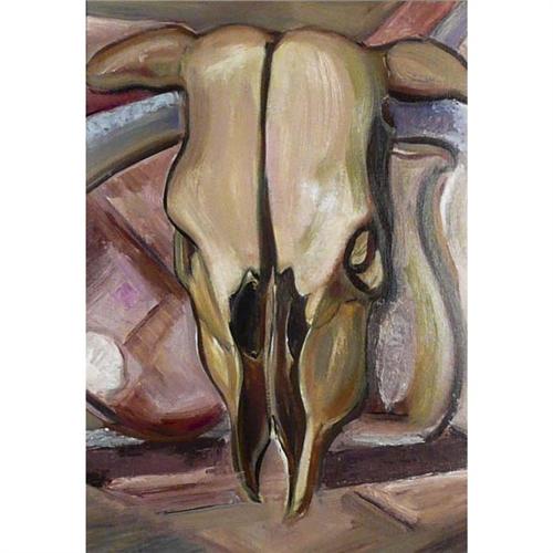7702 John Edward Thompson (1882-1945) Oil on Board Modernist Bull Skull Estate stamp verso 22 1/2" x 15 1/2"