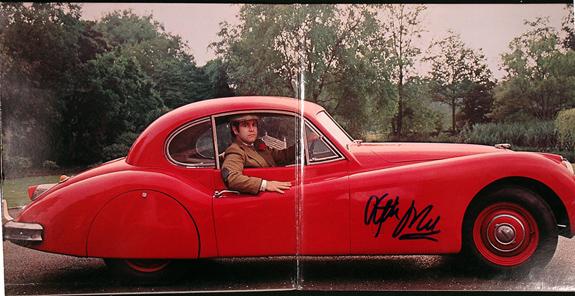 John, Elton - Signed "A Single Man" Album Cover. Hand signed on the red roadster pictured across the fold-out album cover. A large signature in dark blue marker. Produced by Elton John and Clive Franks and released in 1978 by MCA Records, it was Elton John's first album without Bernie Taupin; the songs were all written by John and Gary Osborne. Light wear to cover edges. Album present.