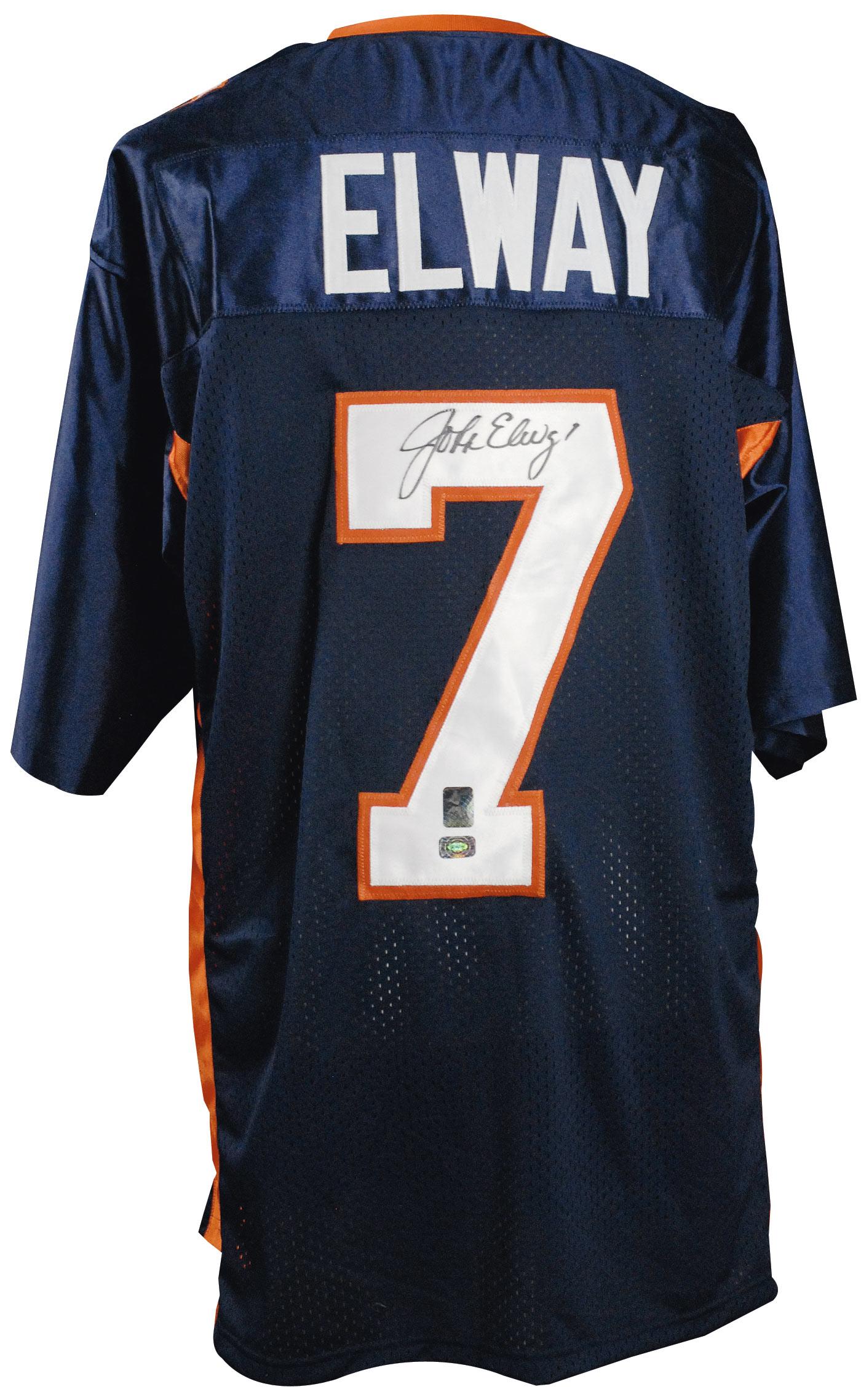 Official replica Denver Broncos football jersey, with sewn on letters and numbers, signed in black felt tip on the number on the back. In very fine condition.