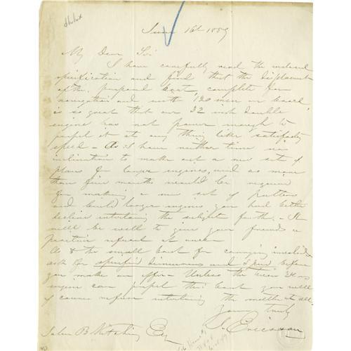 John Ericsson Dsigner of the Ironclad, ALS John Ericsson (1803-1889), engineer, designer of the iron