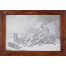John F. Clymer (1907-1989) (Wyoming) Pencil Drawing. Wolf Attack. Sight Size 11.25" x 16.5". signed lower right. Est $6,000 - $8,000.