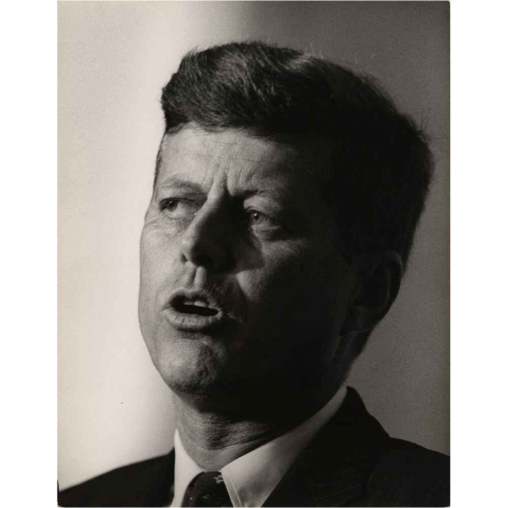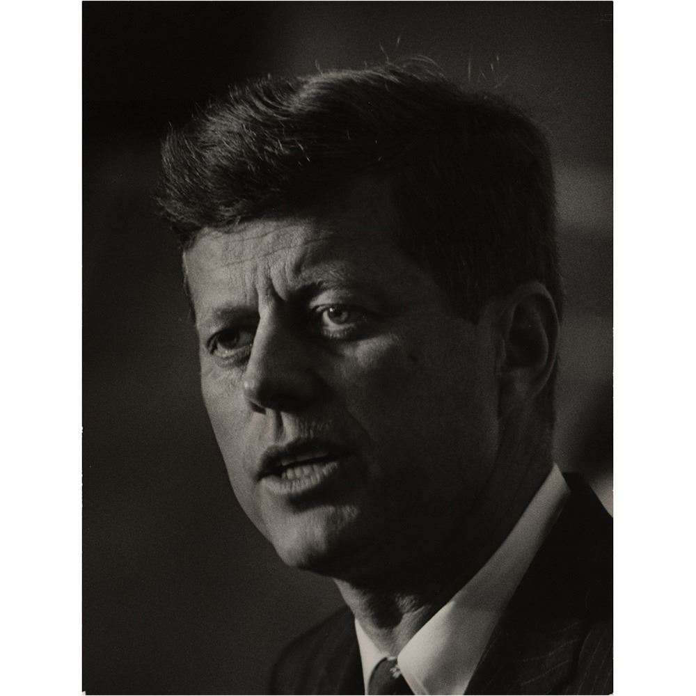 Eight photos by John Bryson, ranging in size from 8.75 x 13.75 to 10.75 x 13.75, including several close-up portraits of Kennedy and images of him meeting with his Democratic colleagues and party officials.