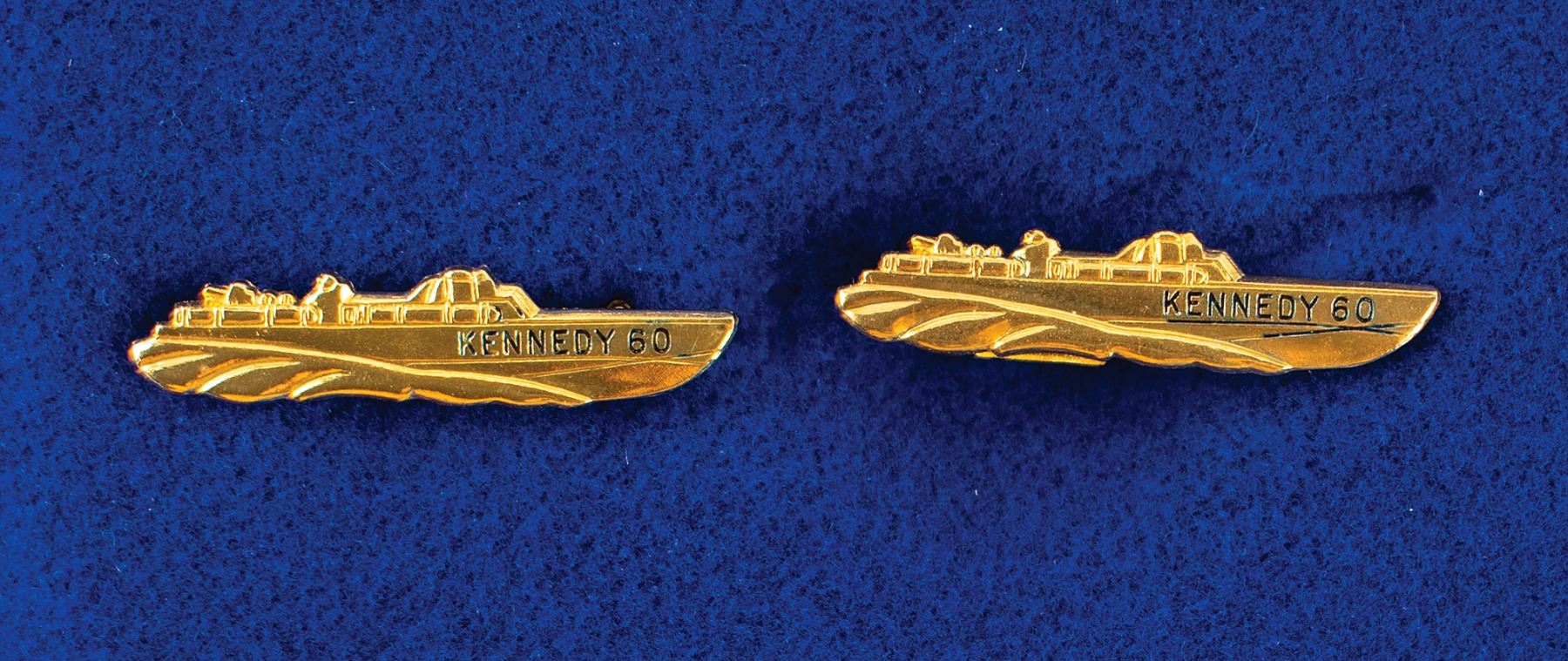 Later on during JFK's run for president, in an effort to quell public concerns about what some called candidate Kennedy’s 'inexperience,' the campaign sought to publicize his heroic naval service. Utilizing the PT Boat as a recognizable symbol, these popular tie clasps and charms were produced as campaign tokens and became highly sought-after mementoes.