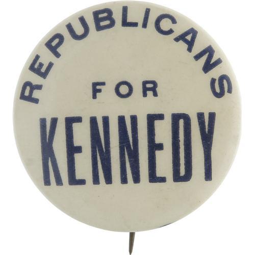 <B>John F. Kennedy Celluloid Campaign Button,</B></I> 1 1/4", with "Republicans/For/Kennedy" on a white background. Excellent condition.<BR><BR><b>Shipping:</b> Miscellaneous Collectibles, Smal (<a target="_blank" href="http://www.heritageauctions.com/common/shipping.php">view shipping information</a>)