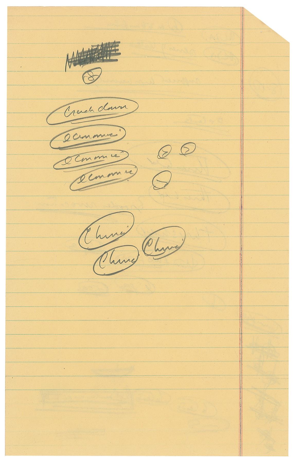 President Kennedy Handwritten Notes and Doodles on yellow lined loose leaf page—double sided, oversized,