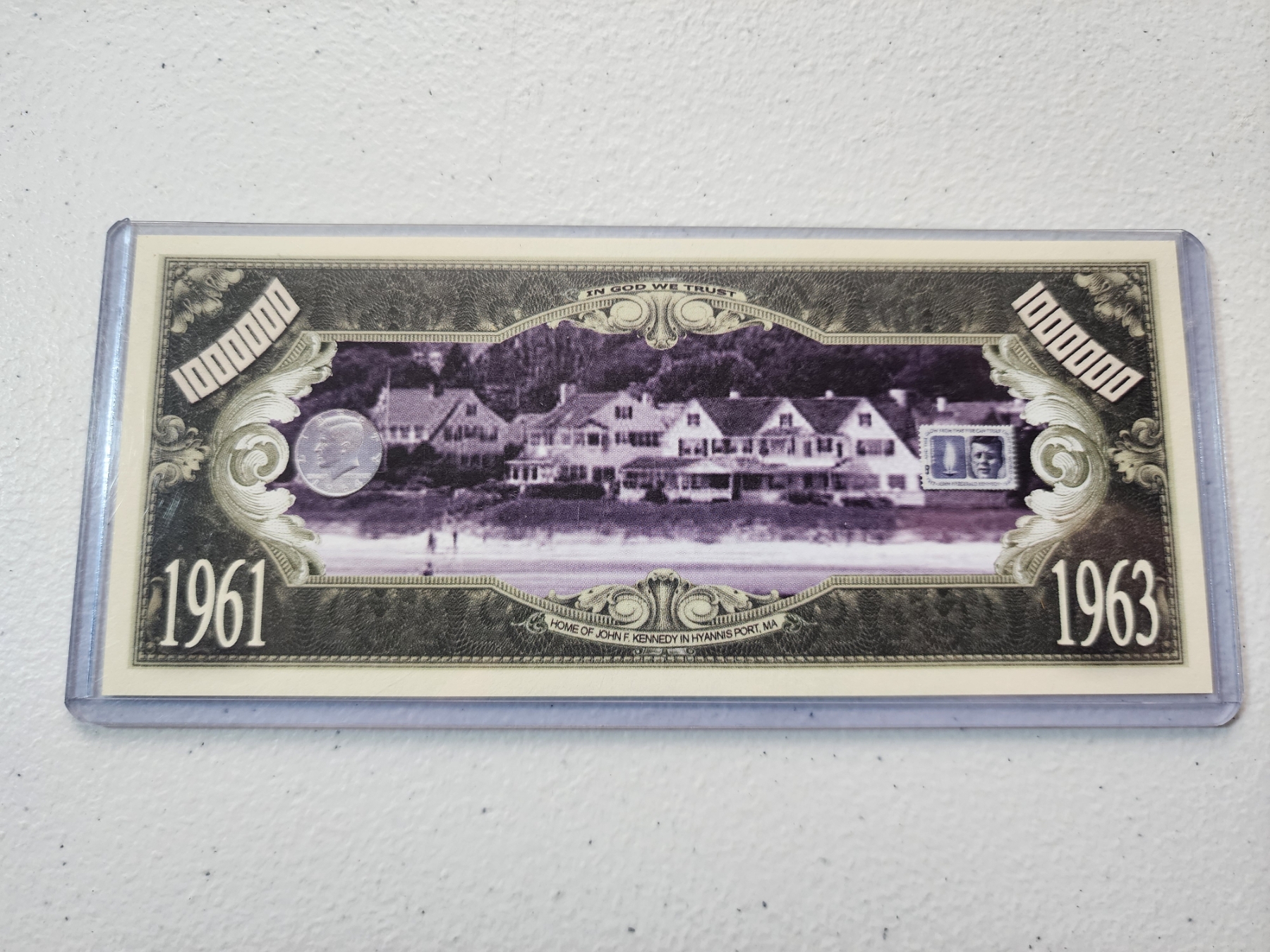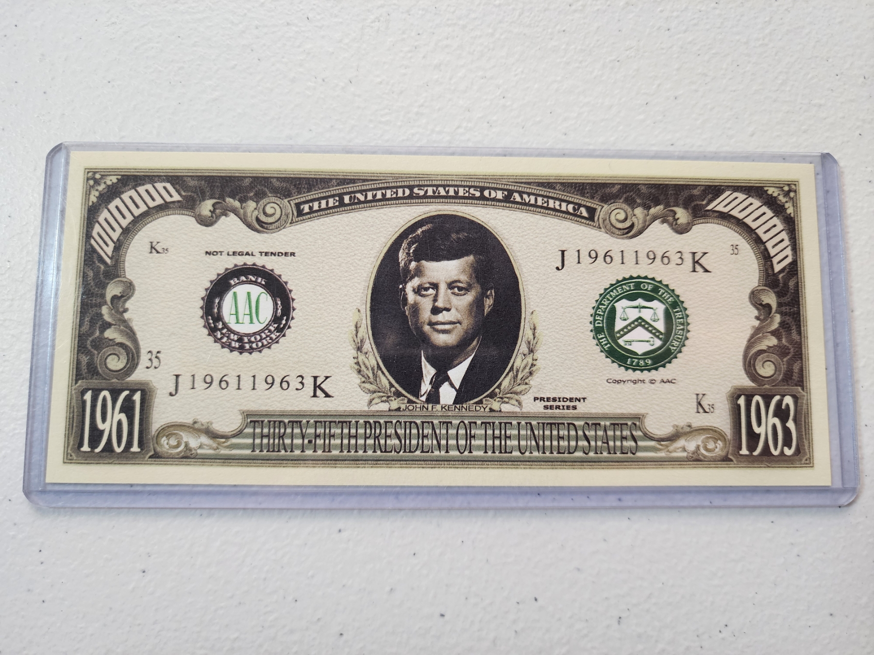 John F. Kennedy Commemorative Million Dollar Bill - Mint Condition in Protective Holder
