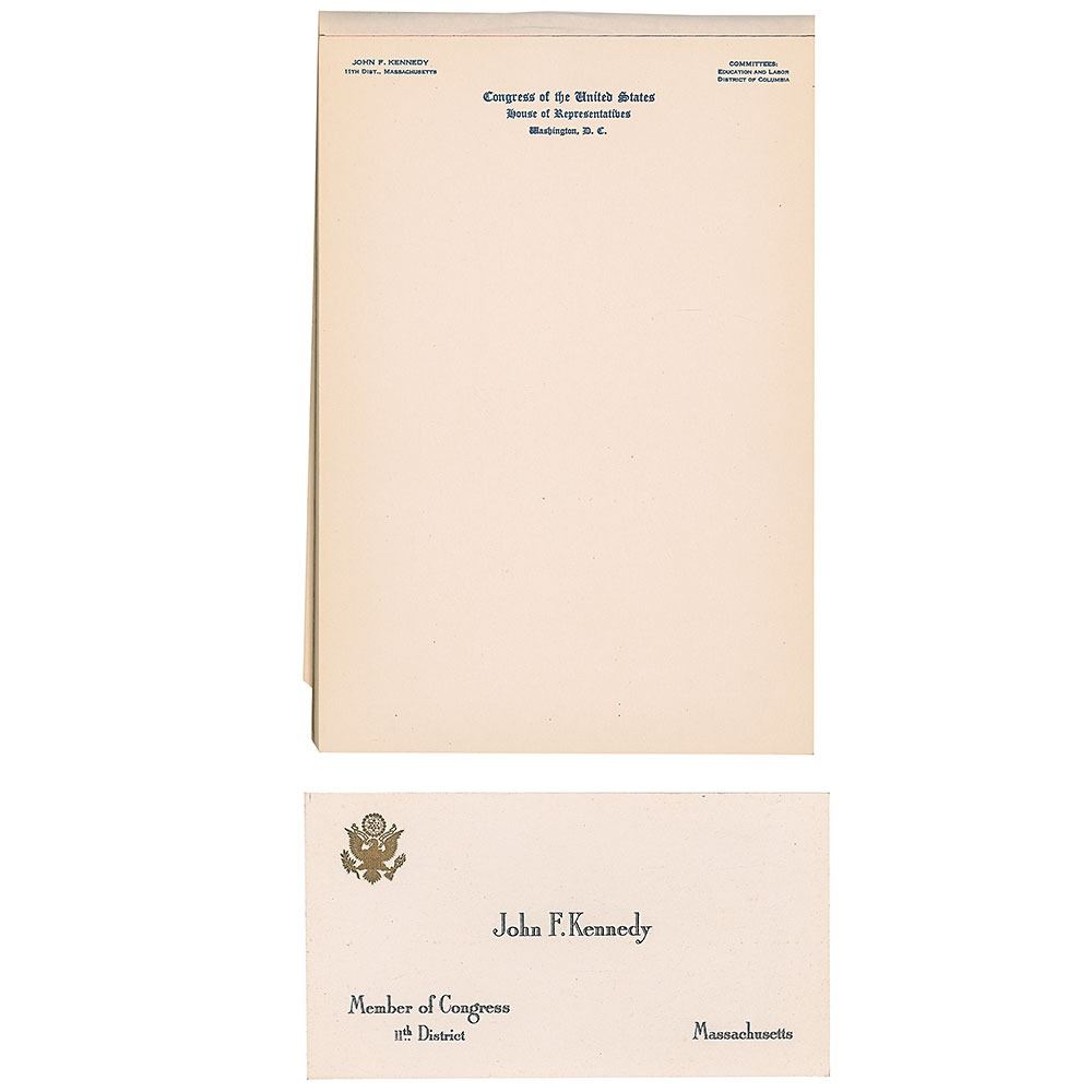 Congressman John F. Kennedy—a full pad of his personalized stationery—extremely rare.