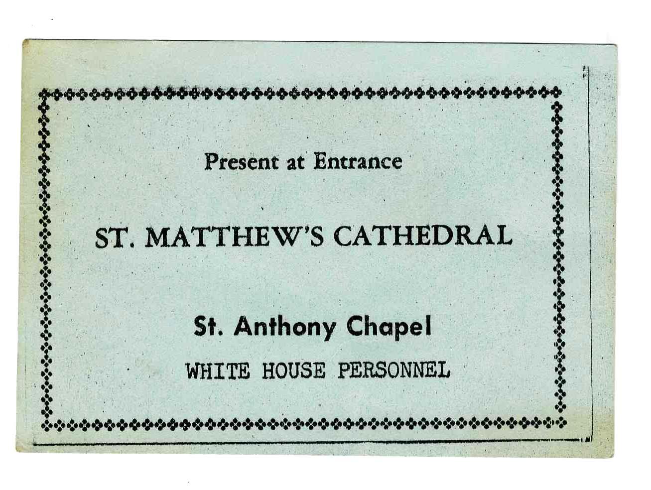 President John F. Kennedy White House Personnel Funeral Pass – St. Anthony Chapel, 25 Nov 1963 – Accompanied by Funeral Seating Chart Copy