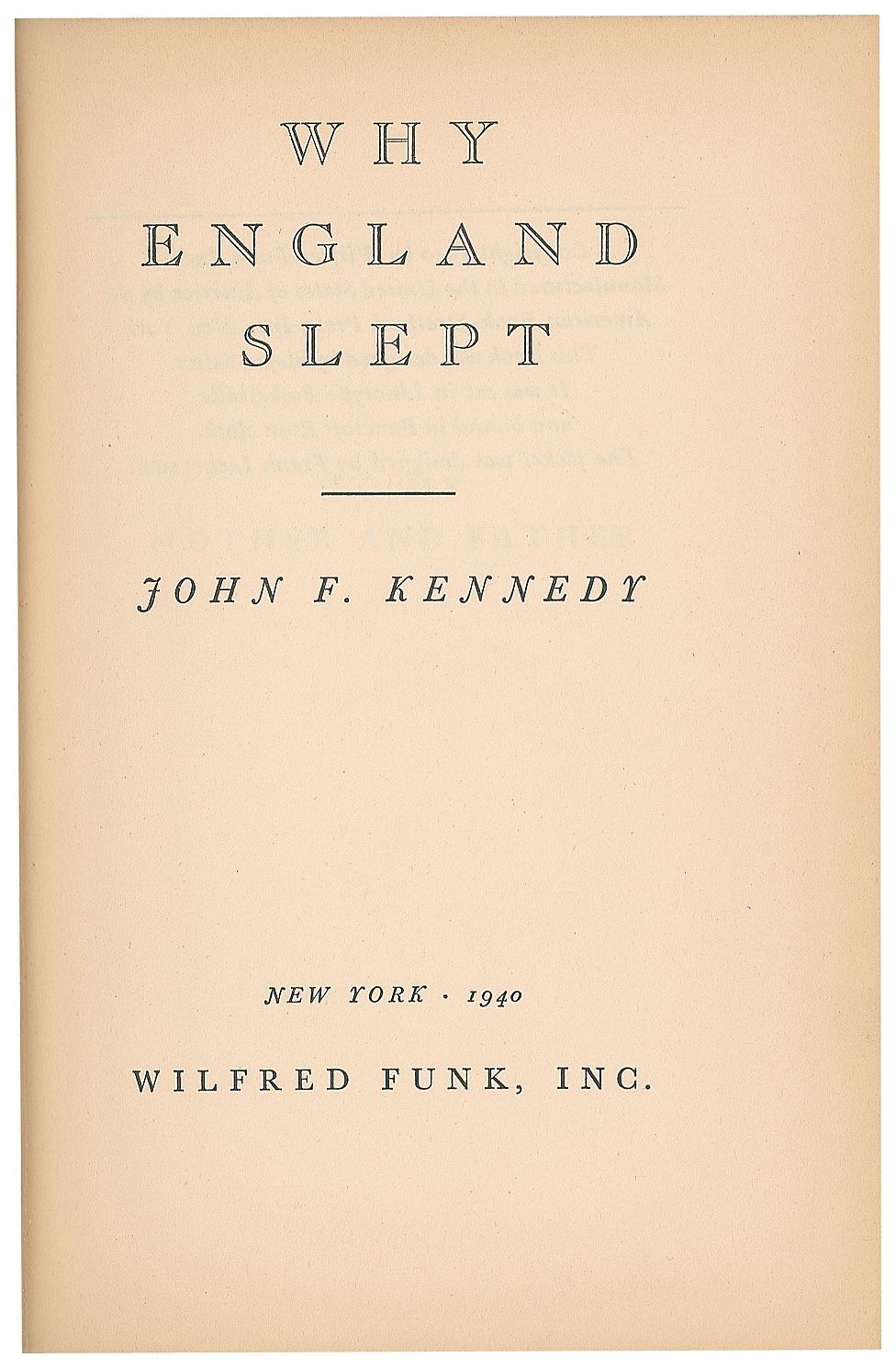 JFK AGREES TO TALK ABOUT "WHY ENGLAND SLEPT" AT A BOOK FAIR 1940: JFK TLS 1940 accepting Mr. Gavin's invitation to speak at a book fair about his book "Why England Slept."