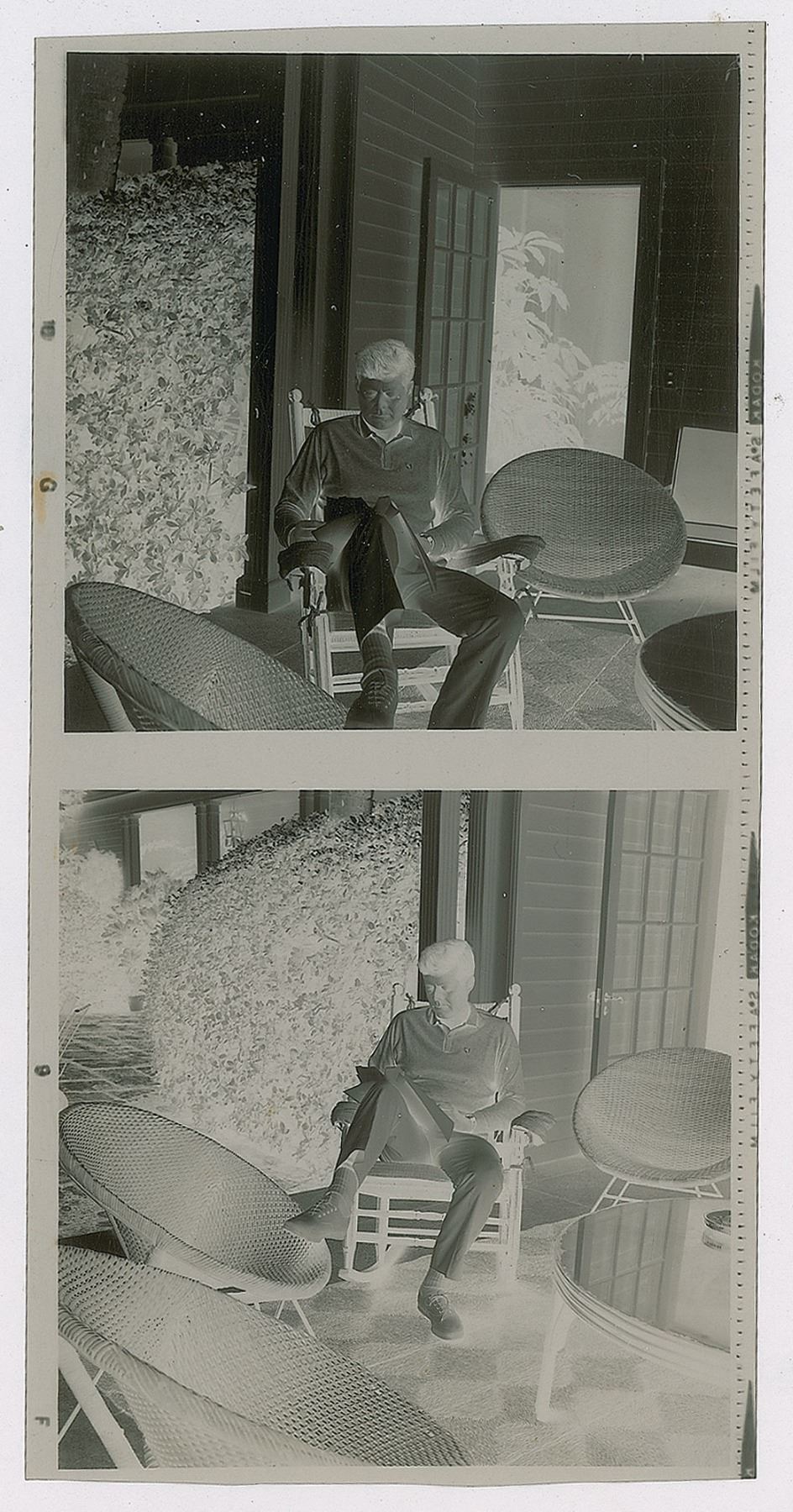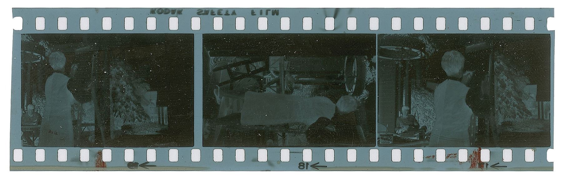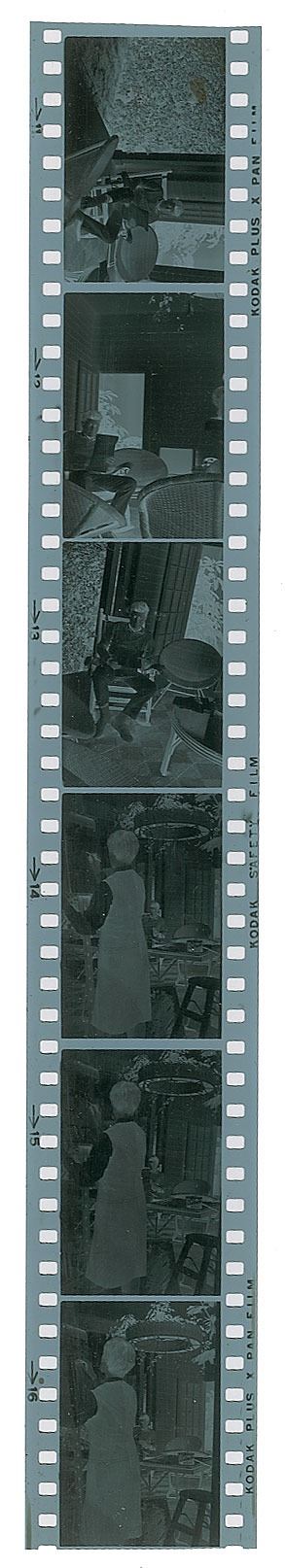 A total of nine strips, ranging in size from 2.5 x 2.5 to 2.5 x 8.25, feature 19 images of either JFK, De Kooning, or both, with all but two images featuring the president, who is either captured in a full-length stance or in a seated pose reading or conversing with Secretary of Agriculture Orville Freeman. The negatives include their original sleeves, which are dated either December 29, 1962 or January 3, 1963. Also included are two 35mm negative strips, with one containing six images and the other three images, with subjects similar to the above negatives.