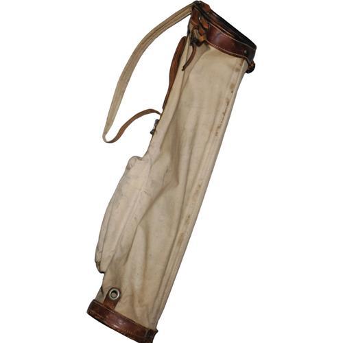 <B>Important John F. Kennedy Personally Owned and Used Golf Bag, with Impeccable Provenance.</B></I> Few relics of this beloved president could have a more personal association than this wonderful item. Kennedy loved golf, and was quite good at it. In his book about presidential golfers, <I>First Off the Tee,</B></I> Don Van Natta Jr., writes: "Despite a bad back, Kennedy possessed a graceful, effortless swing, which allowed him to easily rank as the best player among the fourteen presidential golfers...(But) as he ran for president in 1960, Kennedy was actually aware that some Americans had become disenchanted with Dwight D. Eisenhower's methodical devotion to golf. Kennedy was almost maniacal about his refusal to allow photographers snap his picture while holding a putter or driver." <BR><BR>"Shortly before the 1960 Democratic Convention, Kennedy nearly shot a hole-in-one at a California golf course. While aide 'Red' Fay, Jr. yelled 'Go In! Go In!' the ball stopped six inches short of the hole. JFK looked stricken with terror! He yelled at Fay, 'You're yelling for that damn ball to go in and I'm watching a promising political career coming to an end. If that ball had gone into that hole, in less than an hour the word would be out to the nation that another golfer was trying to get into the White House.'" (<I>First Off the Tee,</B></I> New York: PublicAffairs, 2003, page 15). Van Natta goes on to write, "...no one looked more comfortable and relaxed on the course than John F. Kennedy. It was not an act; he was relaxed because he knew he could play. Kennedy glided from hole to hole, making impossible shots look easy, flashing that winning smile..." <BR><BR>"When he became president, he practiced in secret on the White House grounds during foggy early mornings, and White House security aide 'Muggsy' O'Leary shagged balls. When Kennedy could escape the photographers he would sneak off to indulge
