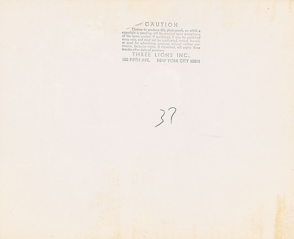 62. All Lots sold by RR Auction are accompanied by a Certificate of Authenticity. On any lot presented with a Certificate of Authenticity (“COA”) issued by RR Auction, that warranty insures only to the original Bidder (as shown in Auctioneer’s records) “Bidder”. Bidder may not transfer the rights afforded under the COA and it is null and void when Bidder transfers or attempts to transfer the lot. The COA warranty is valid from date of the auction in which Bidder was awarded the lot to five (5) years after its purchase. The COA warranty is valid as to its attribution to the person or entity described or to the lot’s usage. The Bidder as well as their heirs, successors and assigns is also given an unconditional lifetime guaranteed that allows the present owner of any lot purchased through RR Auction the right to consign with RR Auction. When the lot is accompanied by a Certificate of Authenticity (or its equivalent) from a third-party authentication provider, buyer has no right of return. On lots not accompanied by third-party authentication or under extremely limited circumstances not including authenticity (e.g. gross cataloging error), a Bidder who did not bid from the floor may request Auctioneer to evaluate voiding a sale; such request must be made in writing detailing the alleged gross error, and submission of the lot to Auctioneer must be pre-approved by Auctioneer. A Bidder must notify the appropriate department head in writing of the Bidder’s request within three (3) days of the non-floor bidder’s receipt of the lot. Any lot that is to be evaluated for return must be received at the office of RR Auction within 35 days after Auction. AFTER THAT 35 DAY PERIOD, NO LOT MAY BE RETURNED FOR ANY REASONS. Lots returned must be in the same condition as when sold and must include any Certificate of Authenticity. If a bidder wishes to challenge the Letter of Authenticity within the five (5) year warranty period, Bidder must present with the claim, authoritative written evidence that the lot is not authentic as determined by a known expert in the field. If Auctioneer concurs that the lot is not as represented, Bidder shall be refunded their purchase price. If the Auctioneer denies the claim, the Bidder may file the dispute with the American Arbitration Association with locale in Hillsborough County, New Hampshire, before a single selected Arbitrator selected by the American Arbitration Association. The American Arbitration Association arbitration shall be conducted under the provisions of the Federal Arbitration Act and the Bidder consents to jurisdiction in the State of New Hampshire. The challenge to Authenticity must be brought within one (1) year if the Auctioneer denies the claim. After one (1) year, the Bidder hereby releases and discharges RR Auction from any and all legal, equitable, administrative and/or other claims, counterclaims, demands, setoffs, defenses, accounts, suits, debts, dues, actions, causes of action, proceedings, arbitrations, damages, executions, judgments, findings, controversies and disputes, whether known or unknown or suspected or unsuspected, whether in law or equity, that the Bidder have or may have had against RR Auction arising from or relating to any claim whatsoever. Specifically, the COA provided by RR Auction, does not provide for incidental or consequential damages or other indirect damages. Any lot sold with a certificate of authenticity or other warranty from an entity other than Auctioneer is subject to such issuing entity’s rules and such conditions are the sole remedy afforded to Bidder. For information as to third party authentication warranties the bidder is directed to contact RR Auction.