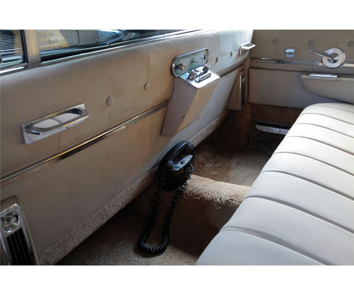 A black 1960 Lincoln Continental limousine from the Kennedy White House motor pool. Originally built by Hugh, this four-door bulletproof limo features a divider window, passenger air controls, power steering and brakes, and a very uncommon two-way telephone in the back seat. Much of the body has been restored, to the tune of approximately $35,000, however, the interior remains in its original condition, with beige leather seats, matching carpeting, and the aforementioned telephone. Leased to the White House for $500 a year from Ford, the limo was used for the president’s personal needs in Washington, DC, then returned the public market through secondary dealerships, where it was purchased in March of 1964 by Dr. James C. Walsh.