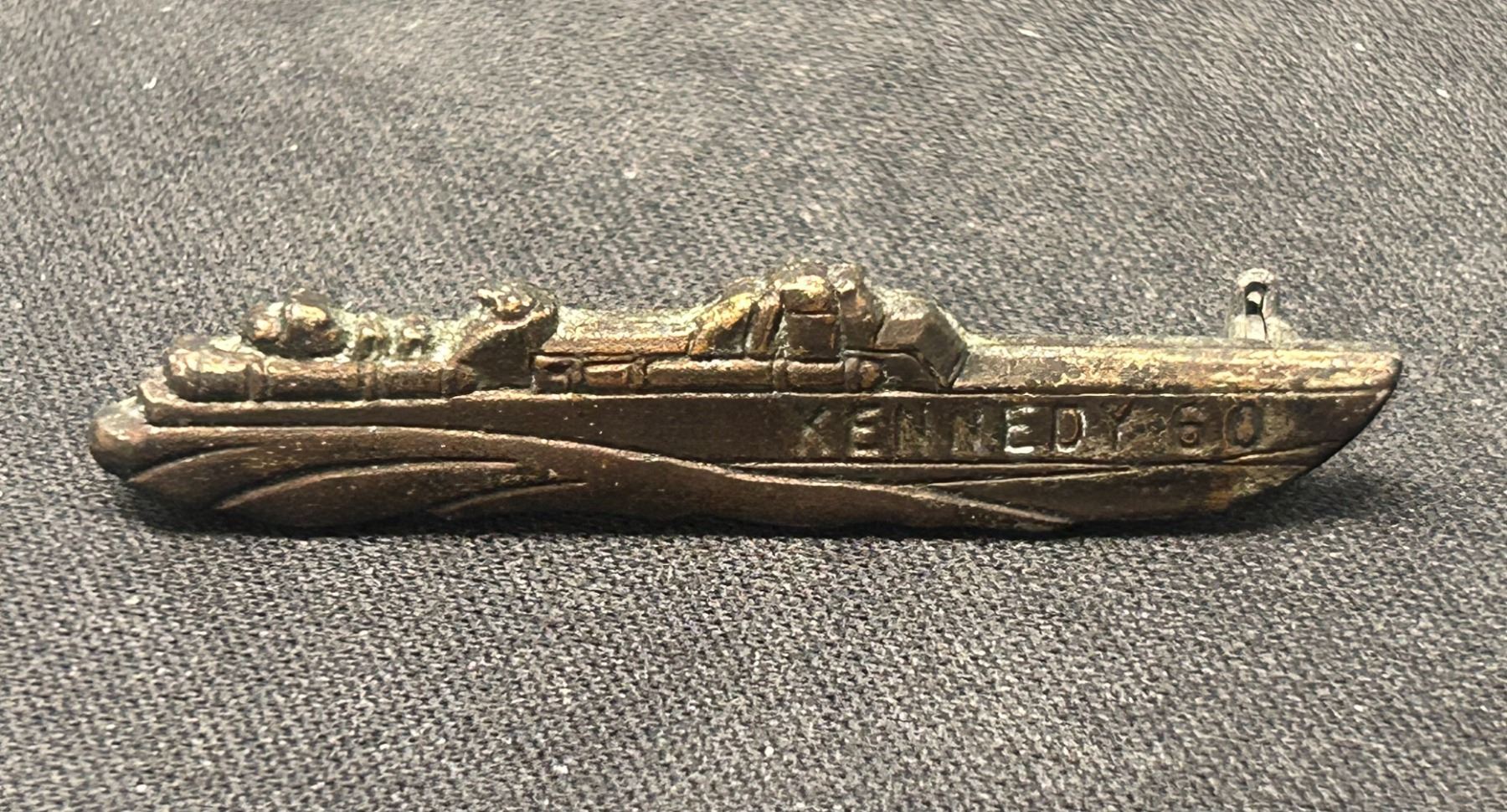 Rare silver pin depicting his famed PT Boat he did service on given to an agent with COA