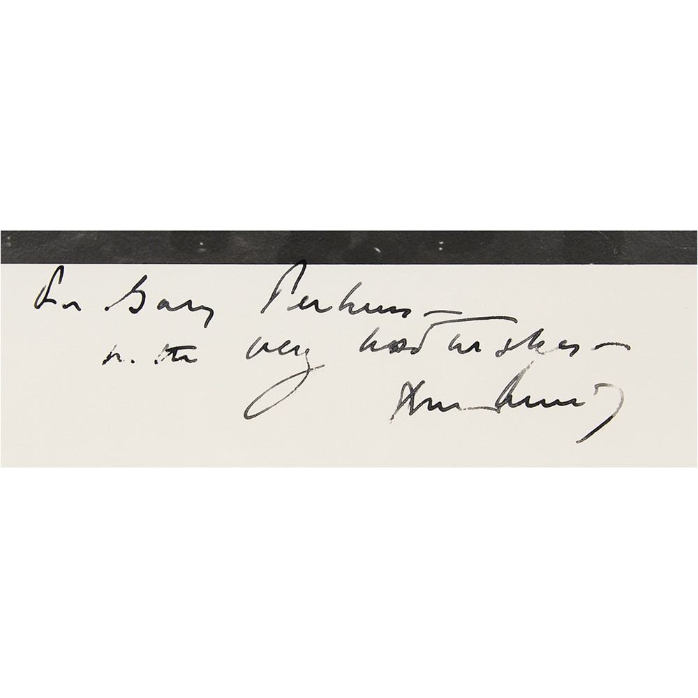 All lots sold by RR Auction are accompanied by an Auction Certificate ("AC”). On any lot presented with an AC issued by RR Auction, the certification is only as to its attribution to the person or entity described or to the lot's usage and only as explicitly stated therein (the "Certification of Authenticity”), to the exclusion of any other warranties, express or implied, including but not limited to those pursuant to the Uniform Commercial Code. The Certification of Authenticity inures only to the original Bidder (as shown in RR Auction's records). Bidder may not transfer, assign, or otherwise convey the Certification of Authenticity, and such purported transfer, assignment, or conveyance shall be null and void. The Certification of Authenticity is valid from date of the Auction in which Bidder was awarded the lot (the "Auction Date”) until five (5) years after the Auction Date, without exception.