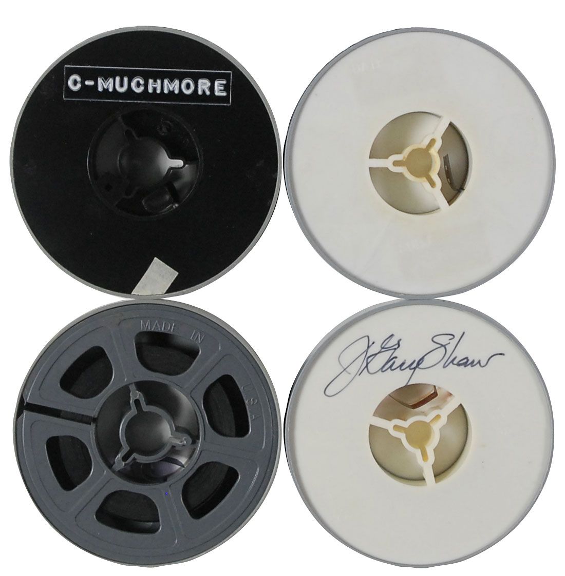 Collection of four reels of film first, a second-generation true copy of the historic Abraham Zapruder film of the assassination of John F. Kennedy, originally obtained directly from New Orleans District Attorney Jim Garrison, and made for use in the trial of Clay Shaw. Color 8mm film is housed in its original box, and signed on the outside by long-time Kennedy researcher, J. Gary Shaw, who obtained the film directly from Garrison. Accompanied by a notarized letter of provenance from Bob Cochran, which states, in part: “I attest to the authenticity of this copy of the Zapruder film came directly from Jim Garrison and was copied by him from the true original…I received three of these films…This film is signed by Gary Shaw who obtained it directly from Jim Garrison,” and also by a notarized letter from Chris Gallop relaying the sale of the film to Cochran. Next, a second-generation copy of the black-and-white film by Orville Nix, containing the final six seconds of the assassination, as well as a slow-motion replay. Third, a second-generation copy of a portion of the Orville Nix color 8 mm film containing the final shot which struck Kennedy and the crowd reaction during the immediate aftermath. Finally, a second-generation copy of the color Super 8 mm Marie Muchmore film showing Kennedy’s limousine entering Dealey Plaza, with a brief image of the final shot fired at the motorcade, and a brief shot of the limousine racing away towards Parkland Hospital. One of the Nix films is also accompanied by a notarized certificate of authenticity from Cochran. An incredibly rare offering including one of the most widely viewed and studied pieces of film in American history, as well as seldom-seen other vantage points from the tragic day in Dallas.