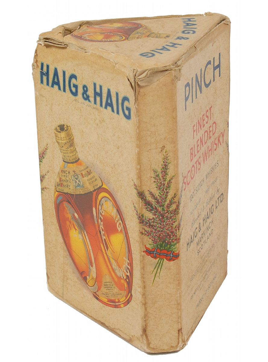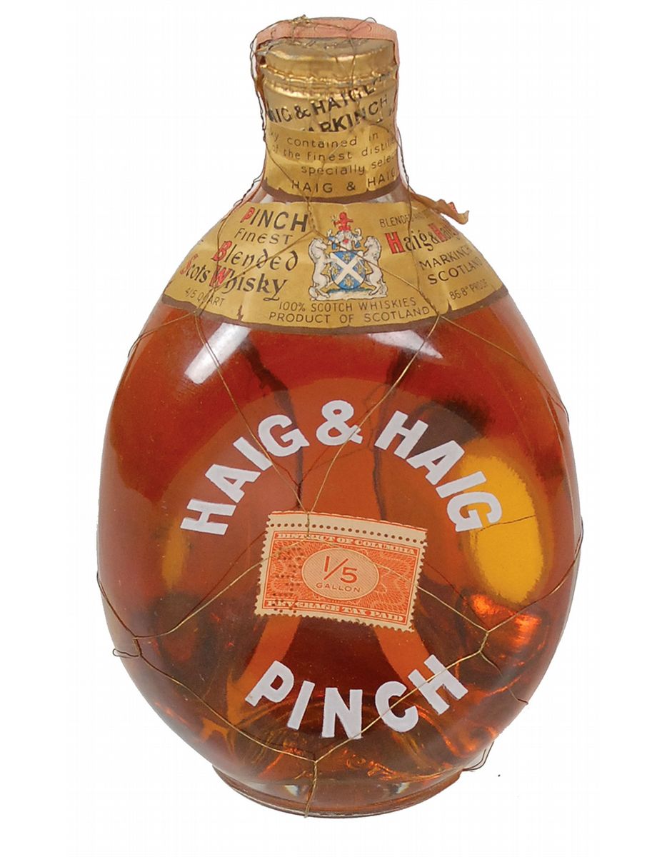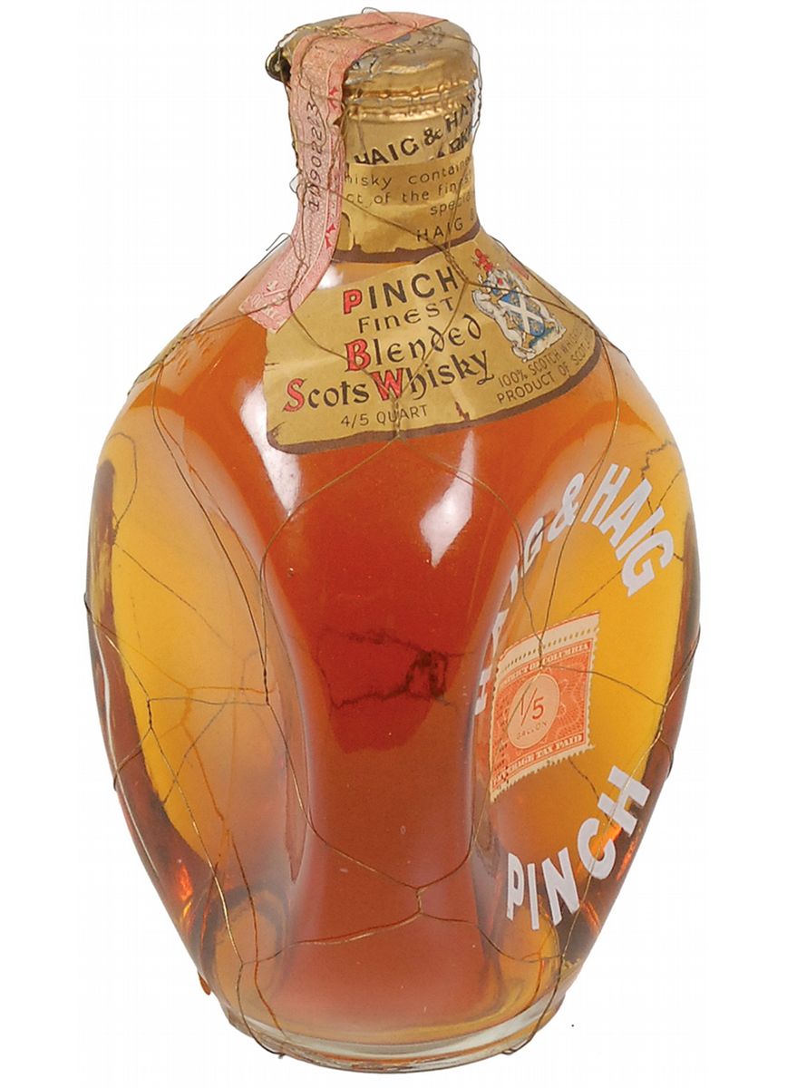 Still-sealed bottle of Haig & Haig Pinch blended scotch whiskey, given to Mr. and Mrs. John F. Kennedy as an inaugural gift after he won the 1960 Presidential election. Unopened bottle has its intact foil seal as well as a paper seal over that which reads “Renfield Imports Ltd, Newark, NJ.” Front of the bottle has an affixed District of Columbia beverage tax stamp. The scotch is still housed in its original Christmas box. This gift was stored in the home of Capitol police officer and Kennedy chauffeur/handyman James H. Boyer, Sr. after the Kennedys moved from their home in Georgetown to the White House in the Fall and Winter of 1960-1961. Pinch is distinguished even further by its famous triangular, dimpled bottle wrapped in wire net. The blend is known as The Dimple in markets outside the United States. The whisky has been bottled in this container since its creation, with the hand-applied wire mesh originally designed to prevent the cork from coming out during export shipments through rough seas.