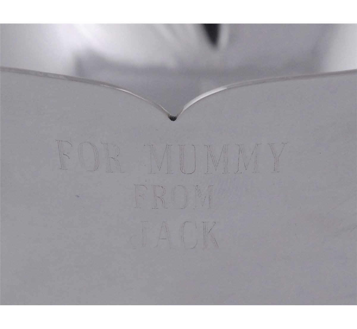 Sterling silver bowl, made by Gorham, standing 3.75? high and measuring 8? in diameter, engraved on one panel, “For Mummy from Jack.” Bowl was originally given by Kennedy to his mother-in-law Janet Lee (Bouvier) Auchincloss. Also includes an unsigned handwritten note from Kennedy, on White House stationery, which reads, in full: “For Mummy from JFK and the people of R. I. with love.” In fine condition. Accompanied by a letter of provenance from John Reznikoff certifying that the bowl was purchased at an auction of items from Hammersmith Farm, the Auchincloss family estate in Newport, Rhode Island, where Jacqueline Kennedy grew up. In JFK's Last Hundred Days by Thurston Clarke, the author describes an awkward situation between Kennedy and Rhode Island Governor John Chaffee who presented him with a ‘chintzy’ vase. Kennedy subsequently presented his mother-in-law Chaffee's vase, calling it ‘a token of my undying affection.’ Suspicious of the gift’s uncharacteristically low quality, ‘mummy’ was relieved to learn that it was actually a present from the people of Rhode Island; it is believed that JFK then gave her this stunning silver bowl as a ‘make-up’ gift. A great memento of the president being caught in a slightly uncomfortable, yet humorous, situation.