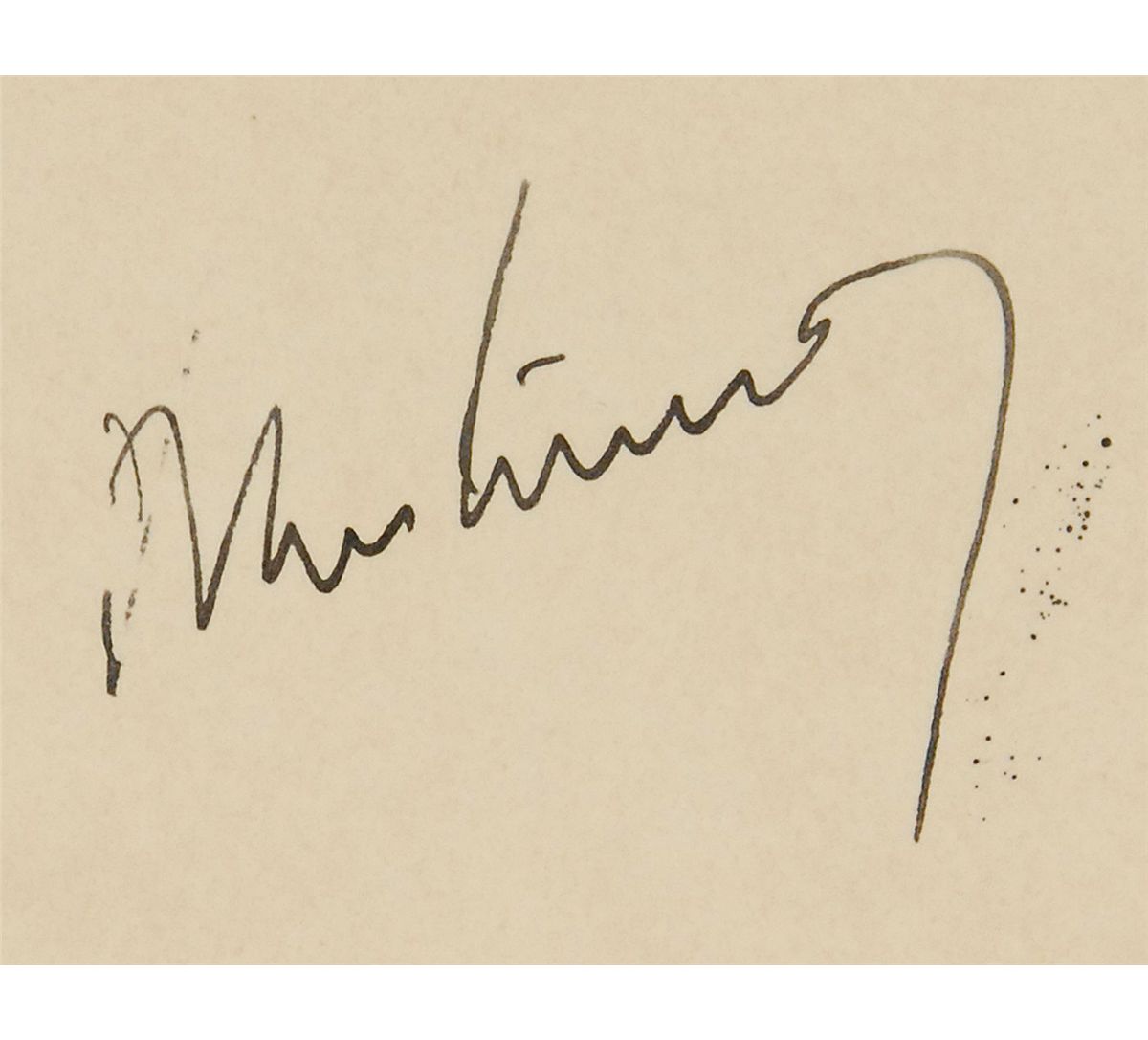 27a. Subject to fulfillment of all of the Terms and Conditions of Sale set forth herein, at the close of the Auction, title to the offered lot will pass to the highest bidder acknowledged by RR Auction, and such bidder thereupon (a) assumes full risk and responsibility (including without limitation, liability for or damage to frames or glass covering prints, paintings, photos, or other works), and (b) will immediately pay the full purchase price or such part as we may require. In addition to other remedies available to RR Auction by law, RR Auction reserves the right to impose from the date of sale a late charge of 1.5% per month of the total purchase price if payment is not made in accordance with the conditions set forth herein. All property must be removed from RR Auction’s premises by the Bidder at his/her expense not later than thirteen (13) business days following its sale and if it is not so removed, (i) a handling charge of 1% of the total purchase price per month from the 13th day after the sale until its removal will be payable to RR Auction by the Bidder, with a minimum of 5% of the total purchase price for any property not so removed within 60 days after the sale, and (ii) RR Auction may send the purchased property to a public warehouse for the account, at the risk and expense of the Bidder.