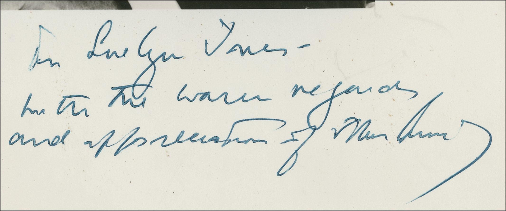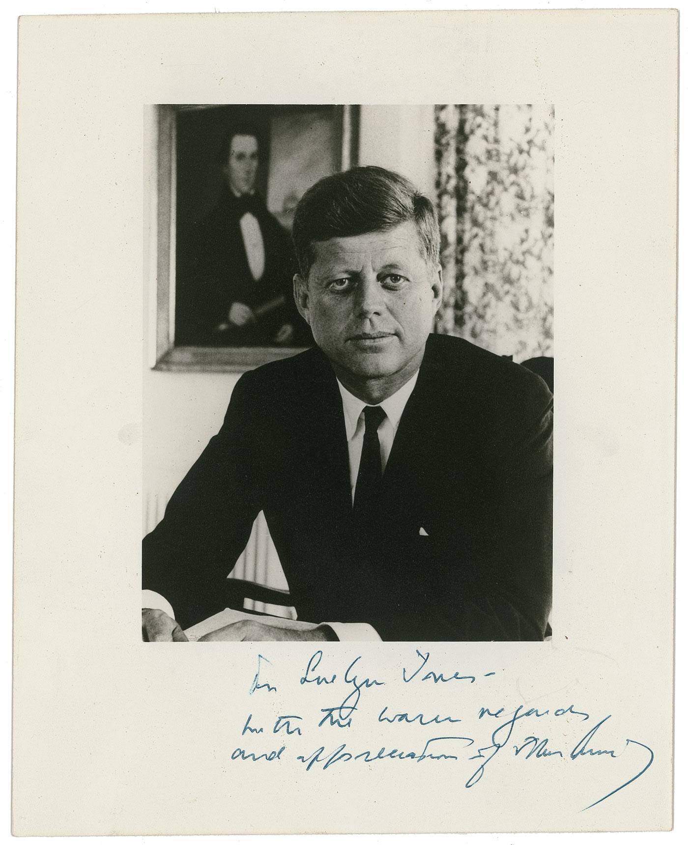 Coit was awarded the Pulitzer Prize for biography in 1951 for her work on John C. Calhoun, and obviously sent a congratulatory message to then-Senator Kennedy as he was welcomed into that literary fraternity a few years later. Coit and JFK first met each other in 1953 during a party arranged by Bernard Baruch, on whom she was writing a biography. Coit later recalled how she “had designs on John F. Kennedy” and dressed “so he got the idea right away,” the senator had ideas of his own—lunging at the writer. Apparently sufficient years had passed and Coit was willing to re-establish contact, though one must wonder what thoughts rushed through her head—or Kennedy’s for that matter—upon seeing the handwritten inquiry of “When are we going to meet again?” An innuendo-laced note from one Pulitzer Prize winner to another. Pre-certified John Reznikoff/PSA/DNA and RRAuction COA.