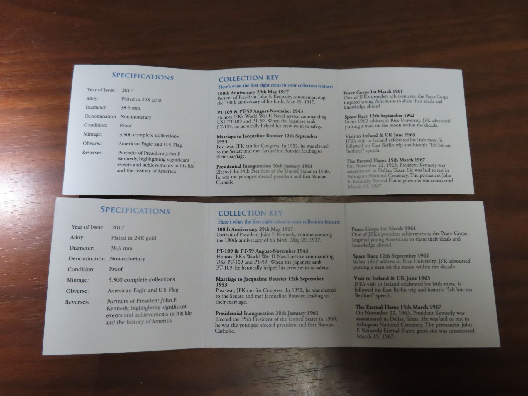 John. F. kennedy 100th anniversary proof coin collection comes with certificate of authenticity - plated in 24k gold