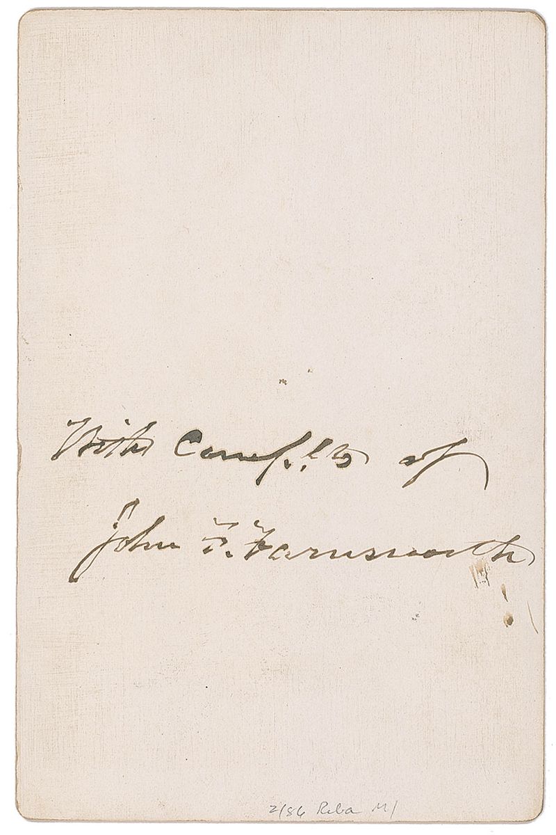 Union general who led a cavalry brigade in the Army of the Potomac during the Maryland Campaign; he was also a seven-term congressman from Illinois closely aligned with the Radical Republicans (1820–1897). Original 4.25 x 6.5 cabinet bust portrait of Farnsworth, signed on the reverse in black ink, “With complts. of John F. Farnsworth.” Published by C. Parker of Washington. In fine condition.