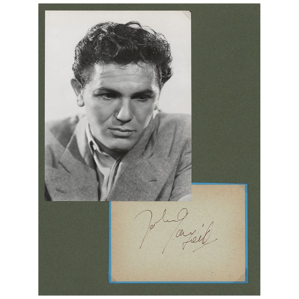 Vintage ink signature, "John Garfield,†on a 5 x 3.75 album page. In fine condition, with faint edge toning.