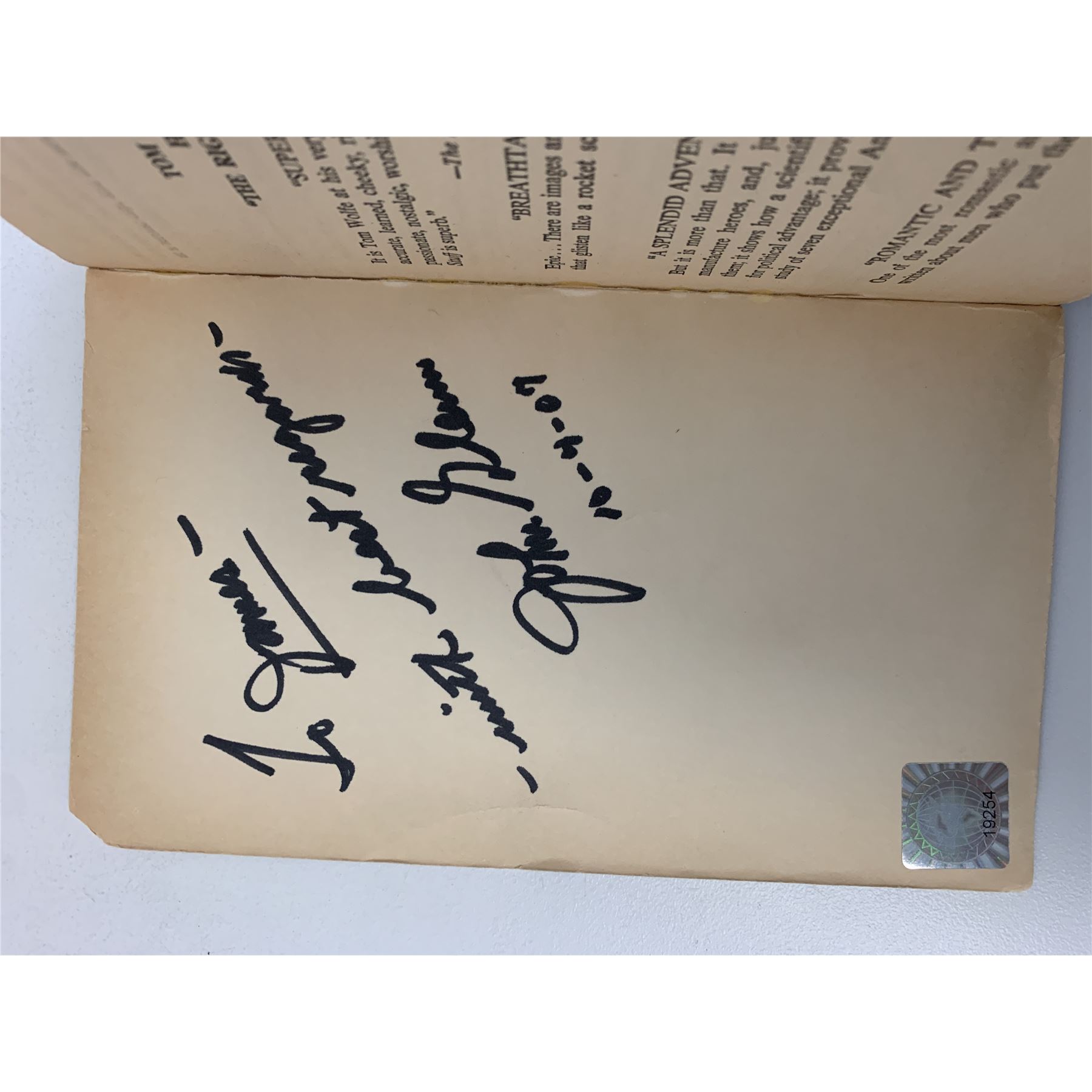 Tom Wolfe The Right Stuff paperback book autographed by Astronaut John Glenn