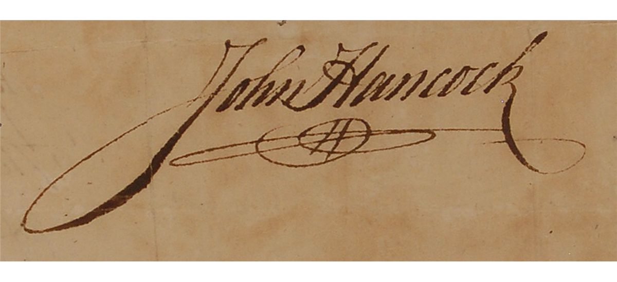 Revolutionary War-dated partly-printed DS, one page, 11.75 x 11, July 1, 1781. Hancock appoints James Shaw as “Captain of the Eleventh Company in the Fourth Regiment of Militia in the County of Plymouth whereof Gen’l Nelson Esq’r is Colonel.” Boldly signed at the conclusion by Hancock as governor of Massachusetts. Beautifully double-cloth-matted and framed with a portrait and nameplate to an overall size of 22.5 x 27. In very good condition, with intersecting folds with slight separations, a couple vertical folds passing through single letters of the signature, light scattered creases, toning, and soiling, and trimmed edges. In October 1780, the Continental Congress, in consultation with General Washington, passed resolutions providing for what would be the last reorganization of the Continental Army—the regimental quota for Massachusetts was reduced from 15 to 10, and all officers had to be commissioned anew. This appointment is likely a byproduct of this major realignment. Oversized. The signature on this document is spectacularly bold, easily rating a 9 out of 10.